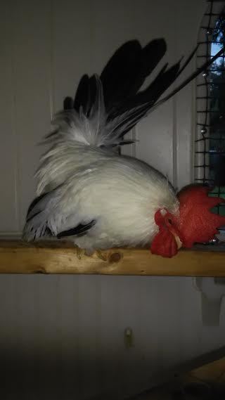 Jack is my son's 1 year old Black tailed white Japanese bantam(hes molting so hes missing a few tail feathers) :-)