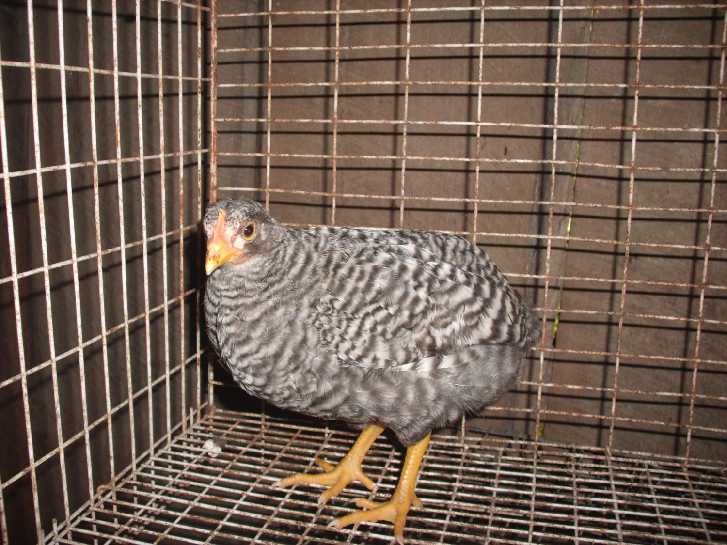This is Mouse. he's older than this now and has a full tail. he is defintely a rooster. i don't have a more recent pic. he is a barred rock.