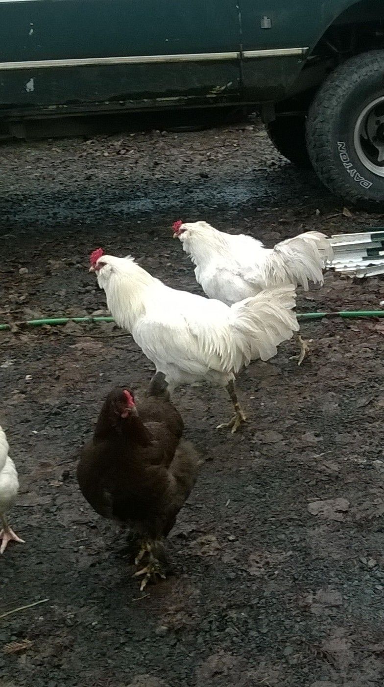 My daughter's Silver and golden Phoenix Roosters at the Lake City show this past weekend.