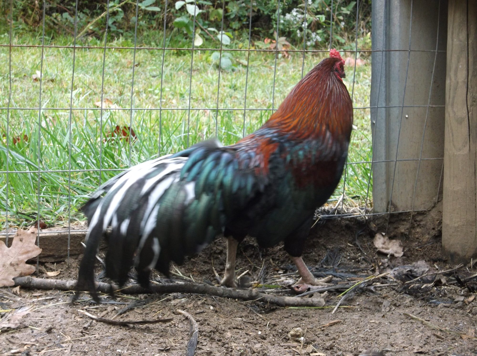 That's a handsome man. Was he hatched by you? Wouldn't it be nice if you could hatch some with feathered legs? It's wonderful he kept that awesome bar pattern.