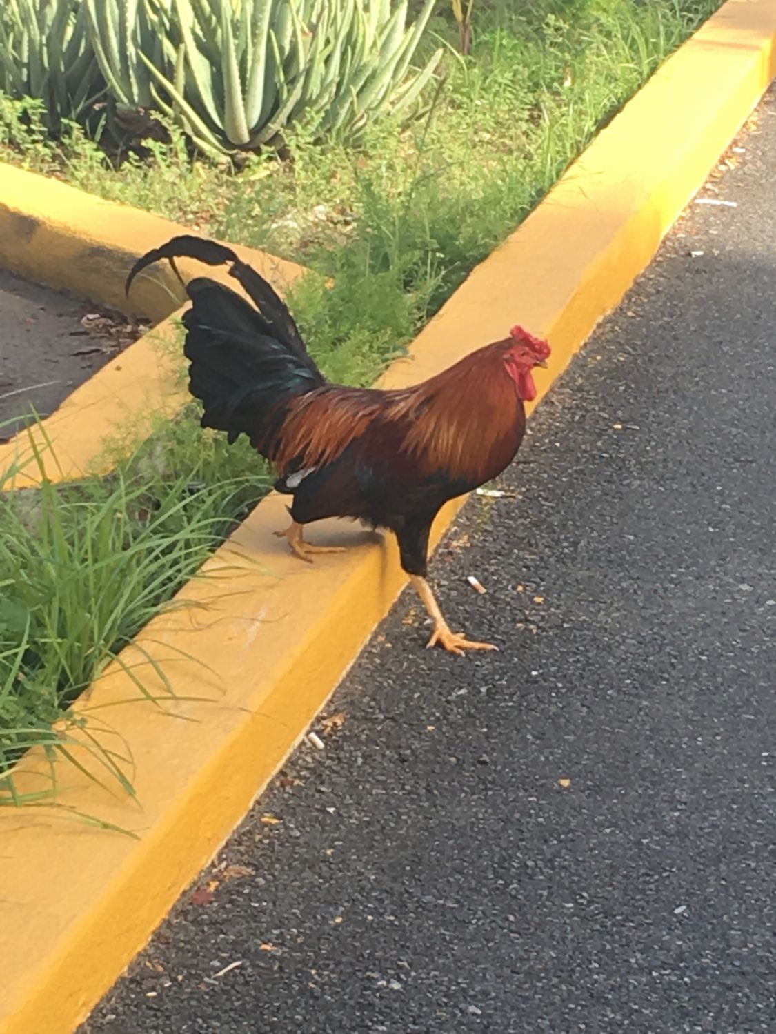 I am obsessed with the thought of chickens going feral... just gets me all excited, dont know why...Not sure. He was just roaming around the shopping area. Thought he was handsome so I grabbed a pic. Not unusual in the Caribbean![]()