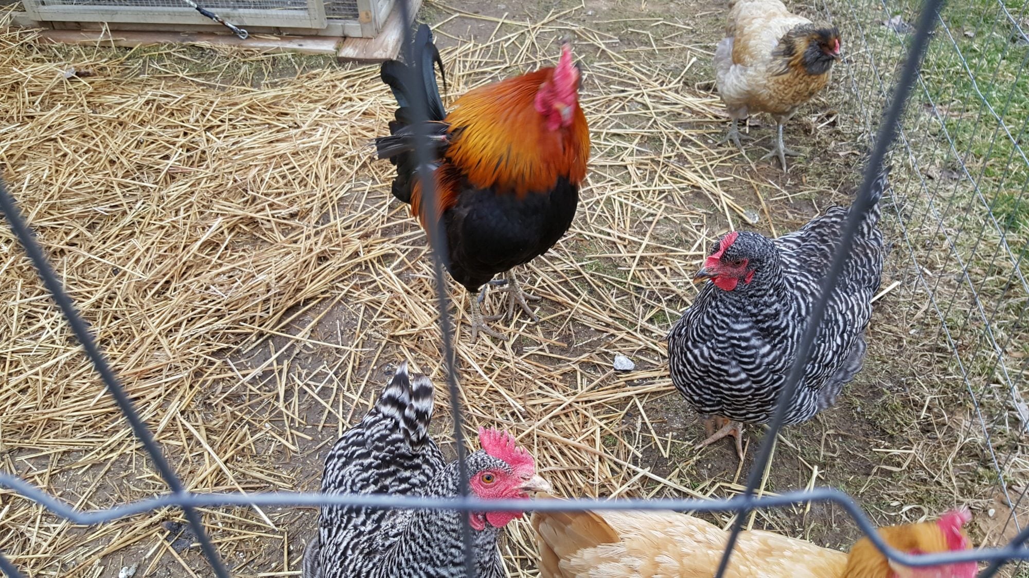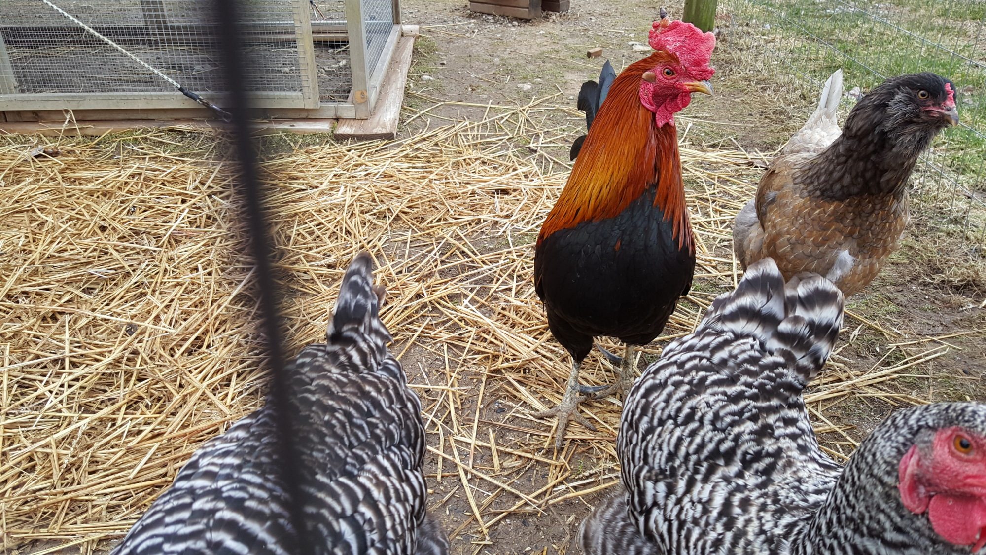I got this guy on Sunday, he's a red jungle fowl. Wasn't going to get a roo for my flock of 5 egg layers, but a cooper's hawk kept coming around. (it even tried to come through my house window once to get at my dove!) Anyway he's a fine roo and seems to be getting along great.