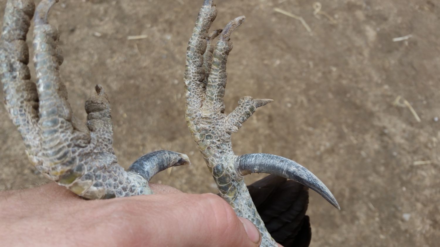 Eventually the spurs will curve as they get longer. These spurs are not trimmed and a bit too long in my opinion