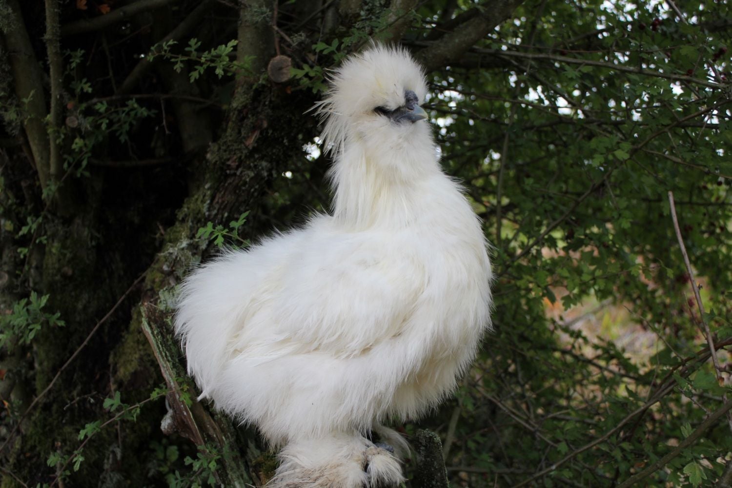 Ashes is starting to get hackle feathers in. Here's his attempt at looking all adult. He's become my fully posable silkie action figure. He knows that there is scratch when I'm done taking pictures.