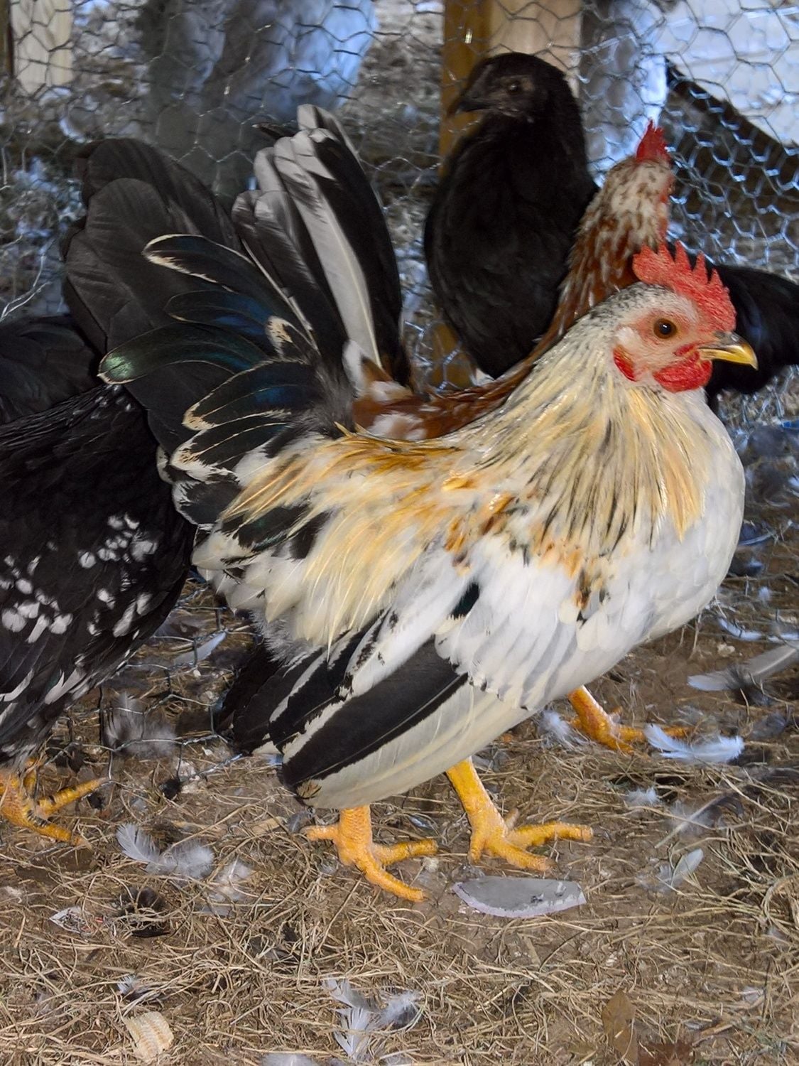 I thought about Seramas (I have easy access to them since my boss breeds them) but I think they're a bit too small for him. Right now I'm looking at a Bantam Sumatra, a gamefowl, or possibly, his sister. It was in fact my best friend who I sold his sisters to when they were young (something I regret now!!) and I'm in negotiations to buy/borrow one of them back. I really like the idea of his sister since she looks almost identical to him except without a beard and with a nice little triangle of feathers on her feet. I got Norman and his siblings through some pretty crazy circumstances (involving chicken thievery and an anonymous good-doer) so I'm not 100% on his ancestry, but through some genetics knowledge and having seen his mother it's a pretty good guess he's 1/2 Phoenix, 1/4 Silkie, 1/8 Sumatra and 1/8 gamefowl (or gamefowl-similar). Since they're total mutts the inbreeding doesn't really concern me, plus I'd like to produce offspring as close to him as possible.