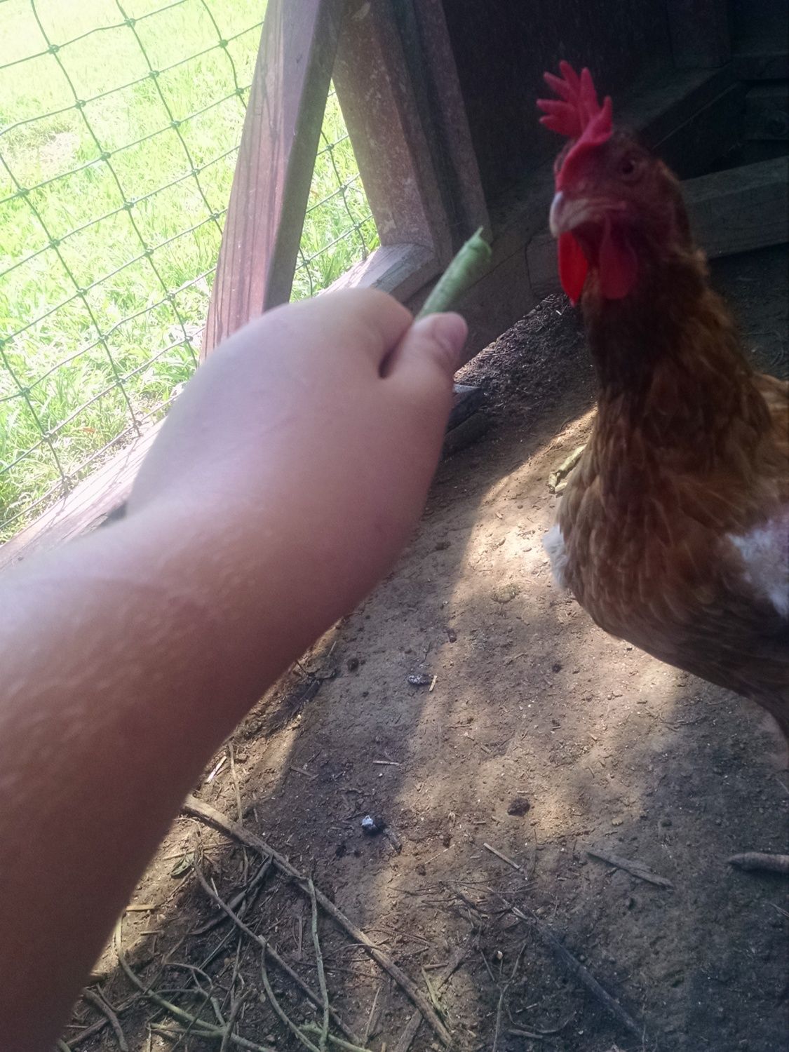This is George. He is a Red Sex Link/Golden Comet. He was purchased at TSC in early April as a group of 20 pullet chicks, but....oh, well.