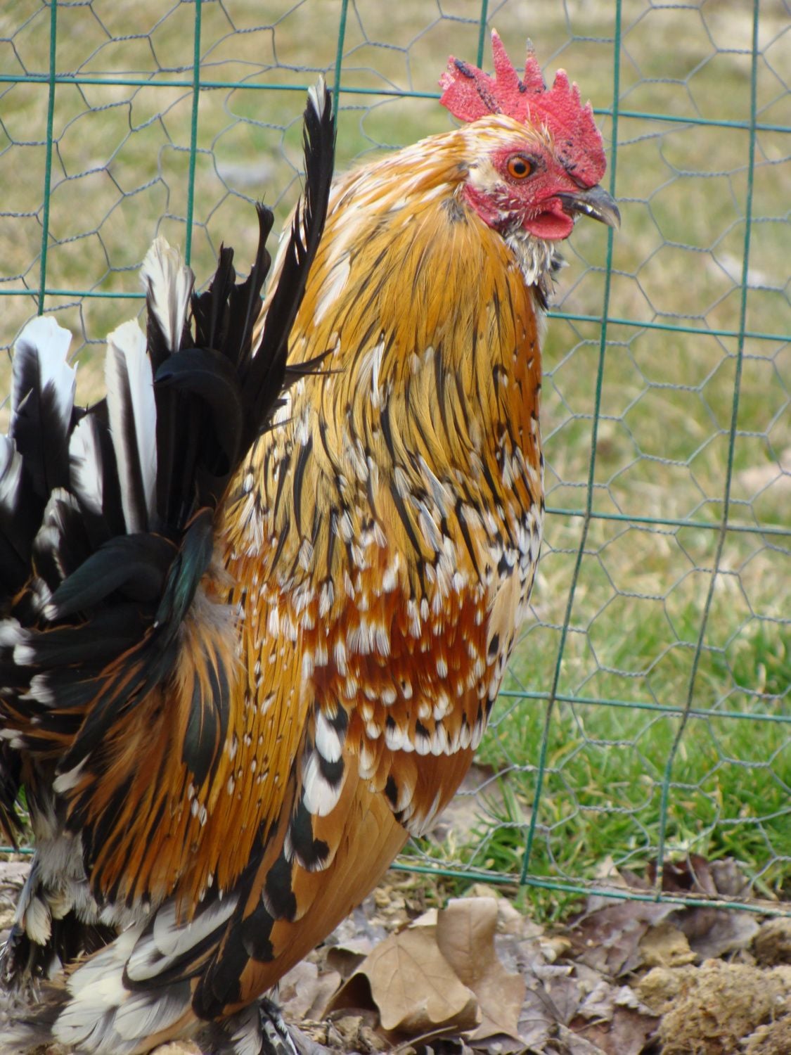 Apr 9, 2013 #946 missnu01 Songster 7 Years Joined Nov 16, 2012 Messages 2,749 Reaction score 158 Points 226 Here's my big Roos backside... Here's an up and coming barnyard bantam And here's a new cockerel