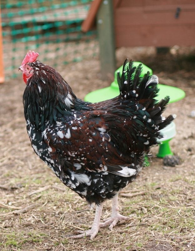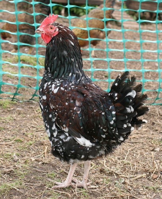 I expect you know by now that I like this pullet a lot. I like the way she carrys herself and the nice wide Back this is a good example of how to get the broad chest and open tail feathers.