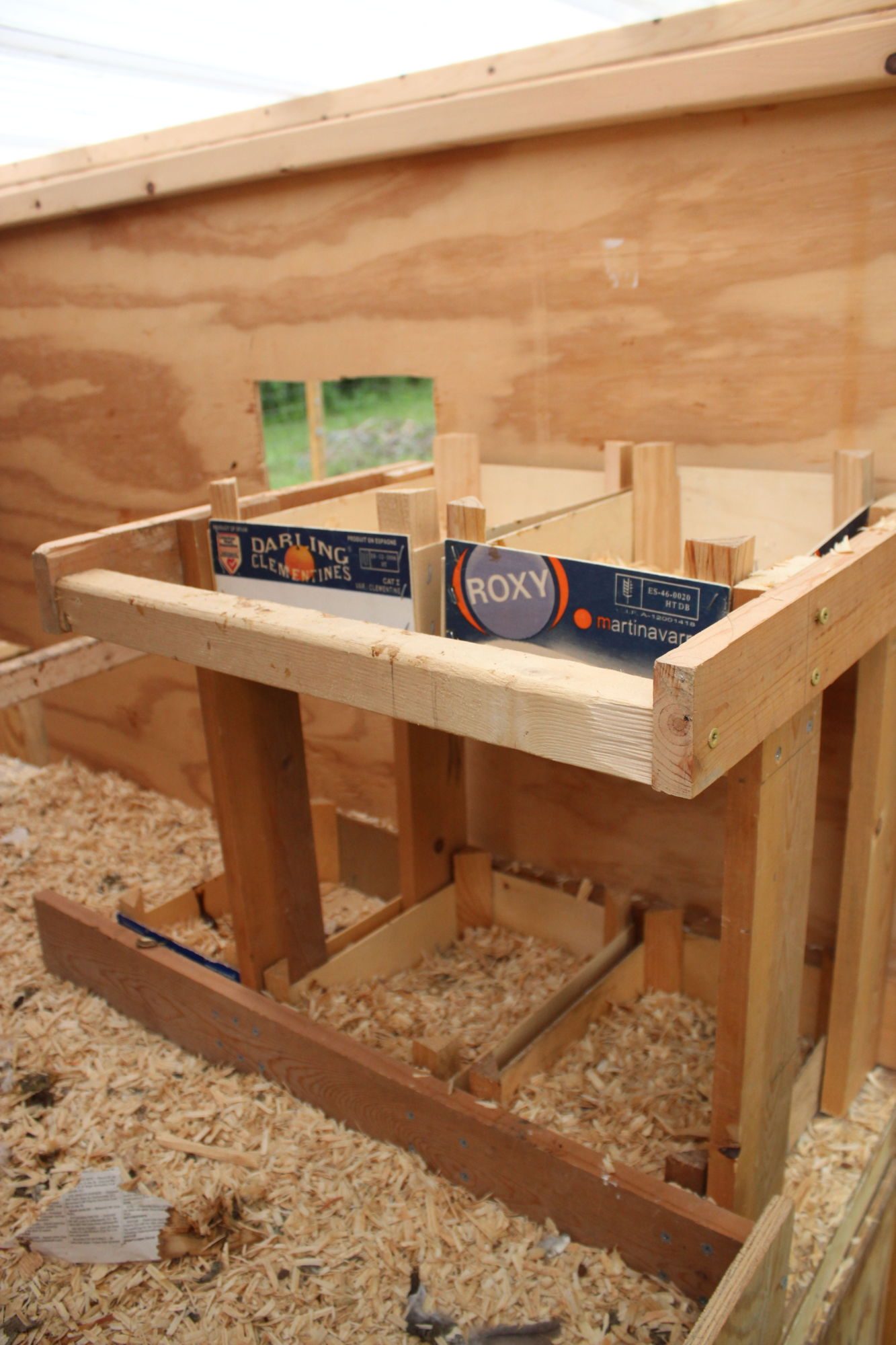 Here are the nests in the corner of my still under construction coop. I tried putting the nest entrances in a variety of places that will be somewhat away from the roosts.