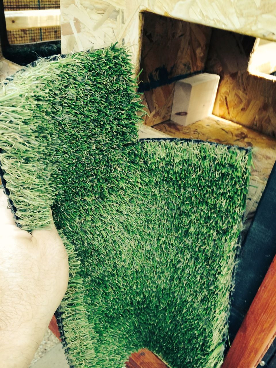 And my experiment with using artificial turf in the nests. Maybe they'll eat it but we'll see. I'm still a ways away from the chickens moving into it.
