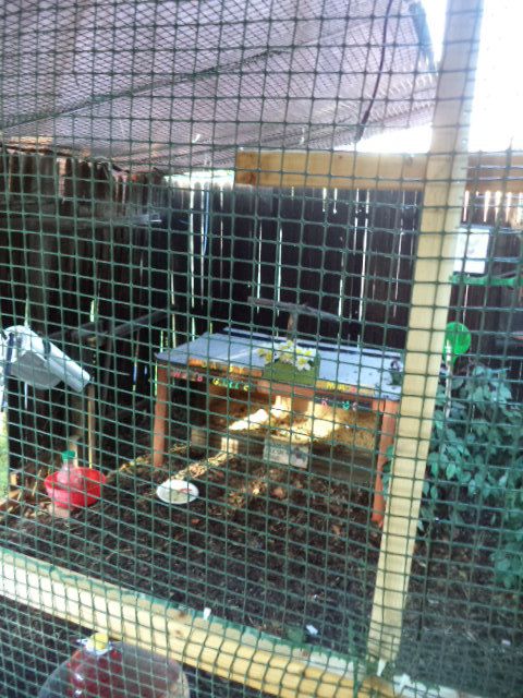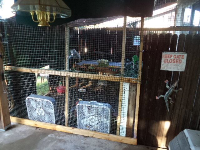 I have fence on 2 sides and netting on one so they can be watched from the patio. Then I have netting across the top with a trap over the netting to protect from the hot Arizona sun and to provide shade. I also have 2 box fans that are always on and a 6' long mister.