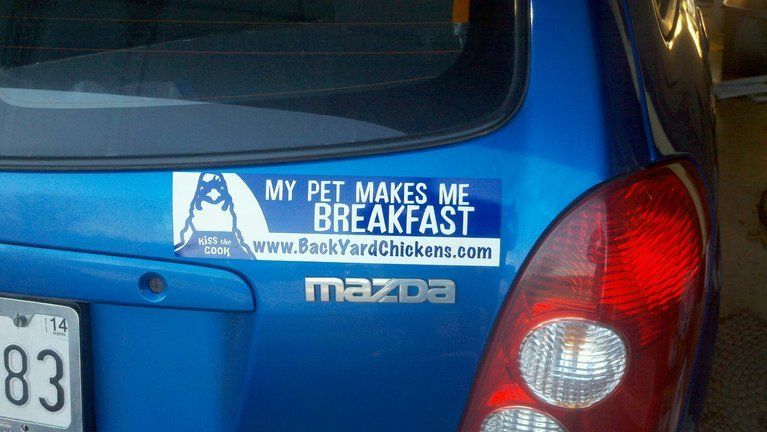 I was so excited to receive my stickers in the mail today. Here is some BYC love on the back of my car and I've got another one going on my truck. Haven't talked Mrs. HandsomeRyan into letting me put one on her car yet but I'm working on it.