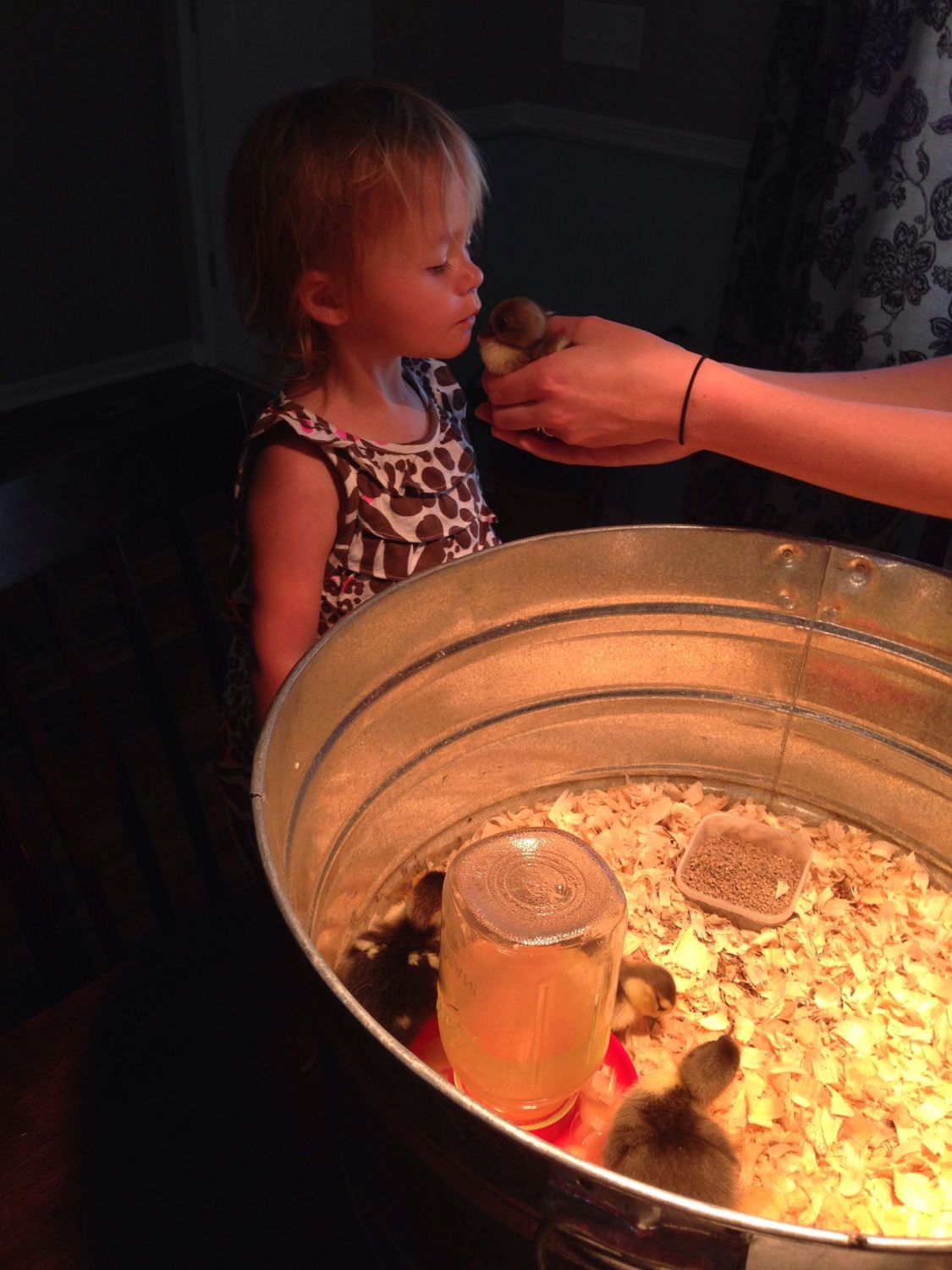 I have a waterer tip that works really well with ducks. Take the plastic reusable container that lunchmeat comes in (red lidded ones work especially well) and cut two rectangles on either side of the lid that are just big enough for beaks and part of the head to go in. Put the container in without the lid and let them find it. Then put the lid on with a little water on the lid. They will immediately start dabbling on the lid and find the holes. Wa La. No mess waterer. As they get bigger cut the holes a little bigger and use deeper container. Mine went from a refill every two hours and constantly wet bedding even when placed on a wire covered container to one filling a day. Just watch to make sure that the holes aren't big enough for them to get into.