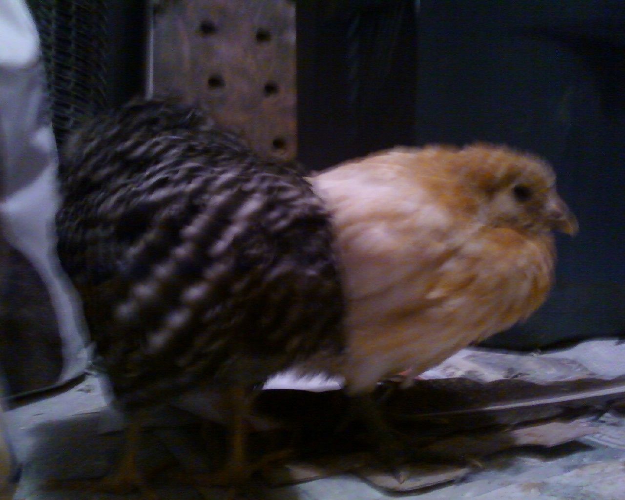They are 5 weeks old. From what I have read it looks like coccidiosis. The black one was like tis yesterday and then today the gold one. I have been seeing a few bloody poops also. Any advise would be great. Thanks!