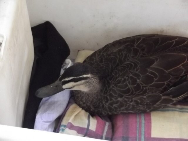 Not just hatched and hand raised by me she is the jewel of my flock, the only female the same breed as my drake. I was really hoping to see some babies this year. Im going to keep her warm - its been a cold frosty night but she's in the warmest place now and she's got her hot water bottle - and keep giving her water.