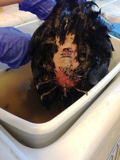 Mud butt - dirty pooped on feathers around her butt. She's still pooping, but boy does she stink! Almost like an amonia-type smell. Any thoughts on that?