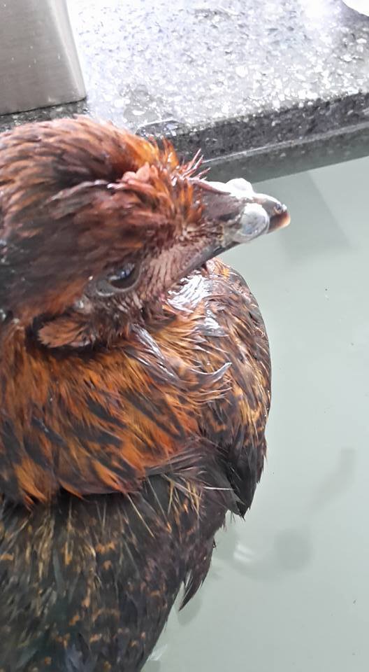 My Maran started displaying unusual behavior this morning when i went to feed. She was walking similar to an egg bound hen but made this AWFUL squawking noise at regular intervals. I couldn't do much since I had to run to class but when i got home I immediately scooped her up and took her to my bathtub to isolate her.