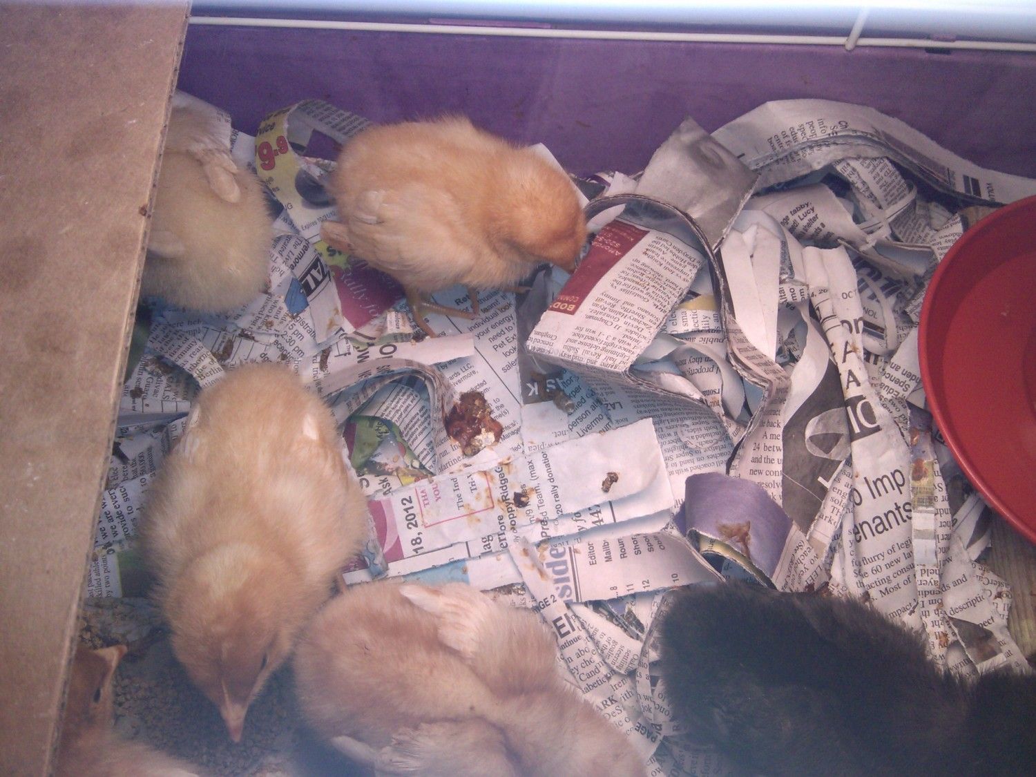 Hey everybody, a little advice. This is my first time trying to raise chicks. I bought 10 chicks from the local feed store on Saturday. I think they were about a week old at that point, so they should be 10-12 days now.