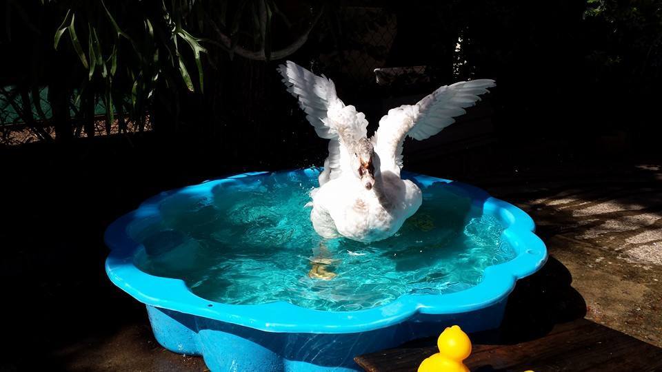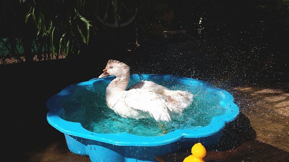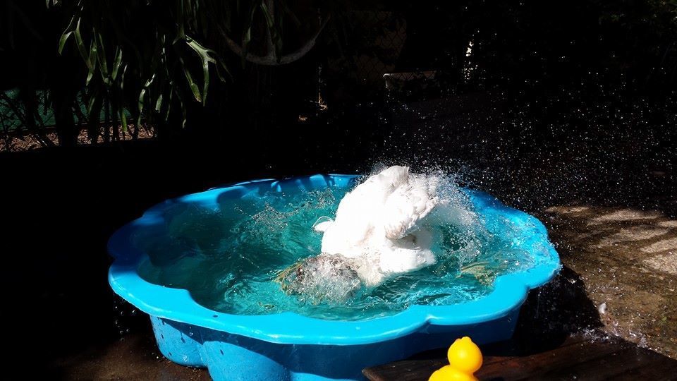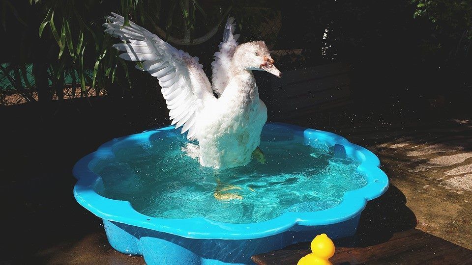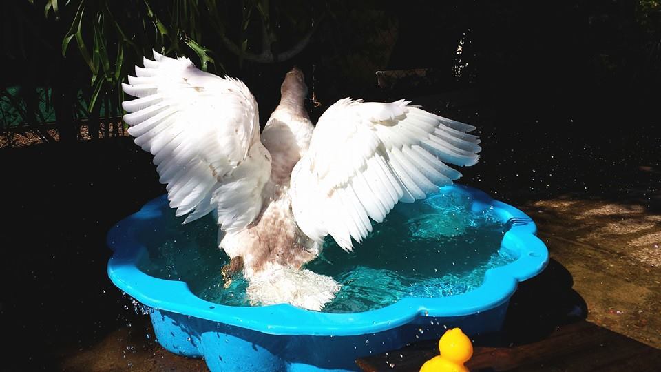His hormones are starting up.So Whistles woke me up this morning by waddling up to the bed and pulling the covers off, then when I went to stand up, he attacked my feet/legs. He's become VERY bitey, and his bites really hurt! When he went to town on my feet this morning, I did that pinning to the ground thing until he 'accepted' it. It didn't seem to bother him too much, when I let him up again, he started wagging his tail furiously and had his 'spinach face' raging hardcore - that's just what we call it when he starts kind of panting at us with his bill wide open, he first started doing it when we gave him greens ages ago but noticed he seems to do it whenever he's REALLY happy or he wants something that's in our hands (he seems to perpetually think anything we carry must be food).
