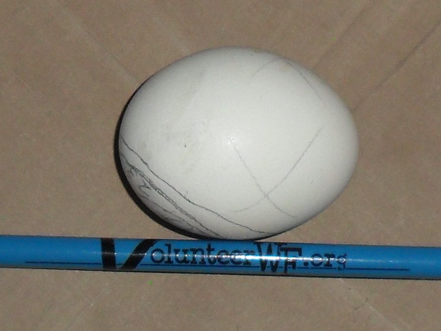 Oh, yeah, the last line hasn't been numbered yet, just made it when I brought it in, it is the 26th, which is Day 16 of incubation as far as I can tell. I have it at different angles, hope it shows how far to the side the original air cell seemed to be. Fortunately, it seems to have migrated toward the big end. The chick is happy and moving around in there like a kickboxer!