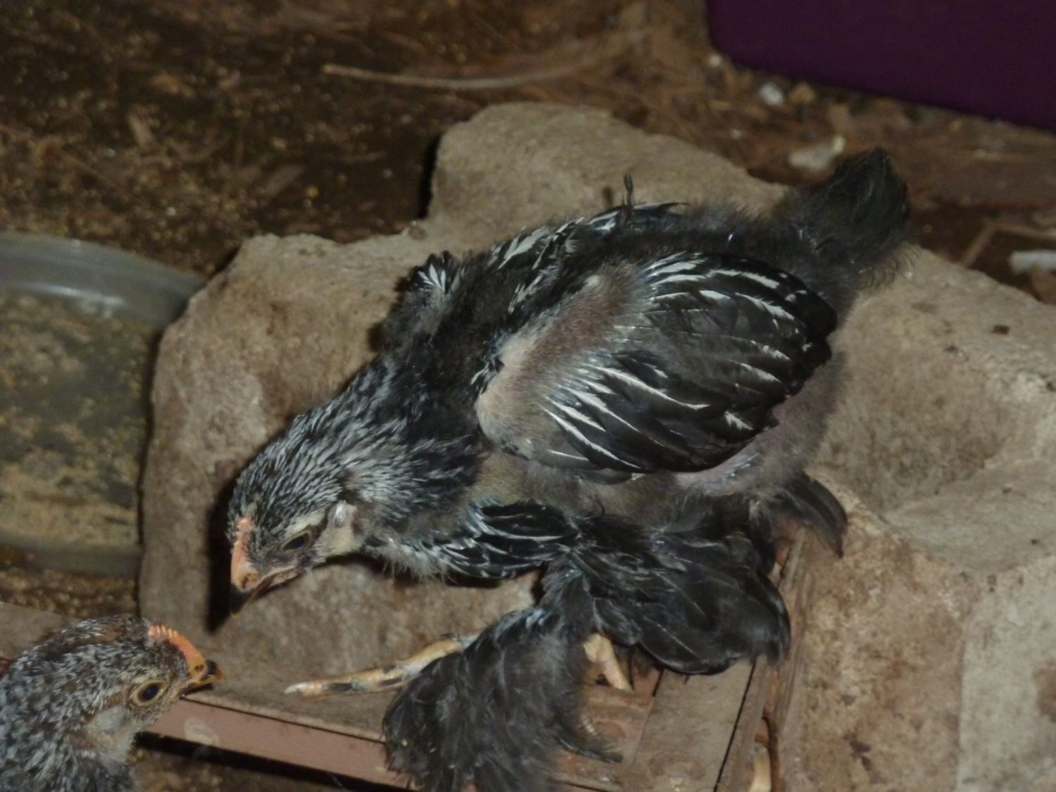 This is Long-legs, a chick that I can't figure out. Not the right shape to be a cochin, not the right comb for a brahma and not the right color for a langshan