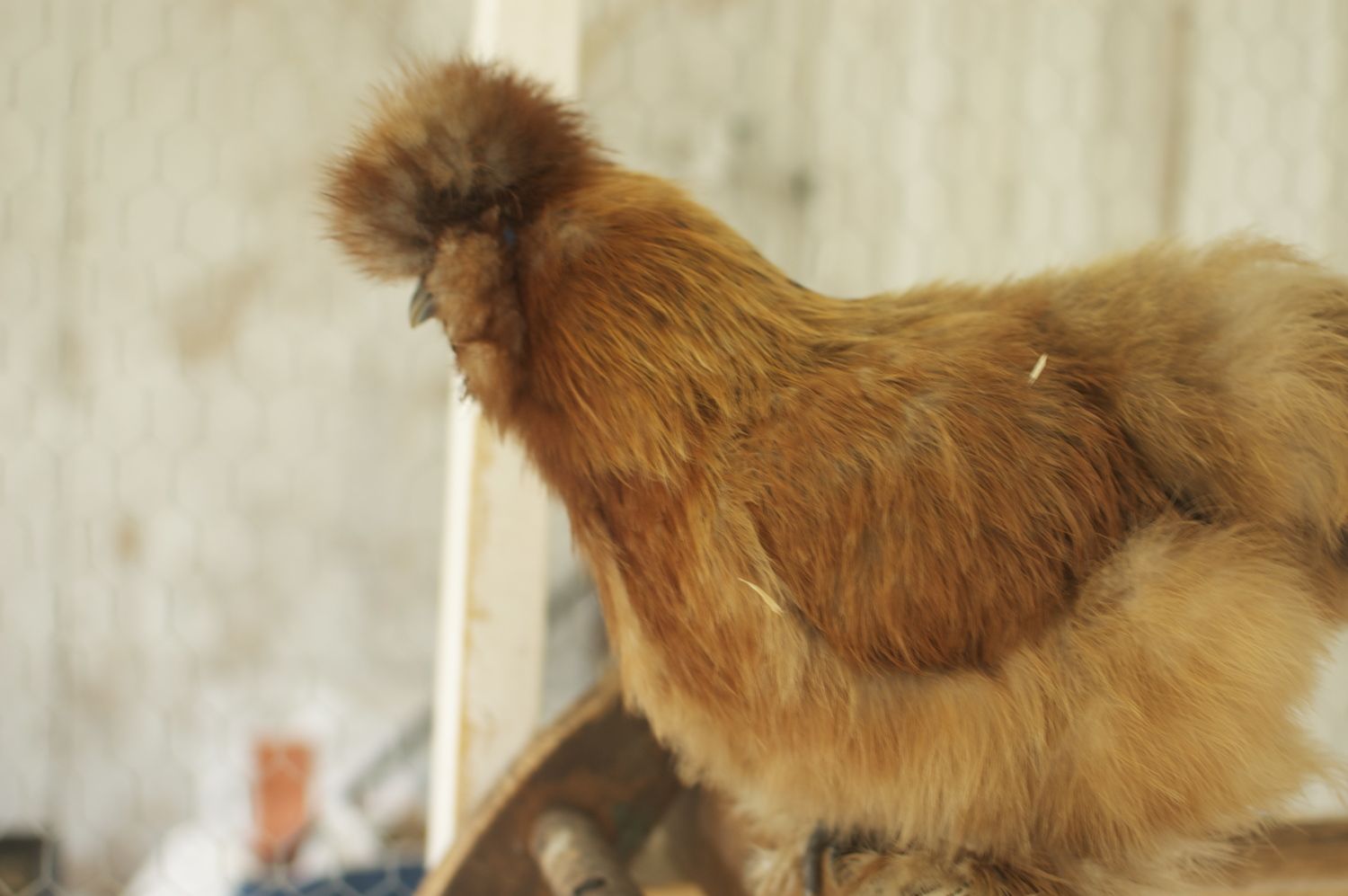 You have some real beauties! I especially like your cockerel. Nice crest and great comb. Not too sure about his wings though. The coloring on your buff looks nice a even.These are my 3 silkies that I have : all are 6 months old. I am curious what your observations are on them!! I know they aren't great photos, but it was pouring rain and all of the chickens were riled up and restless in the coop! Thanks!