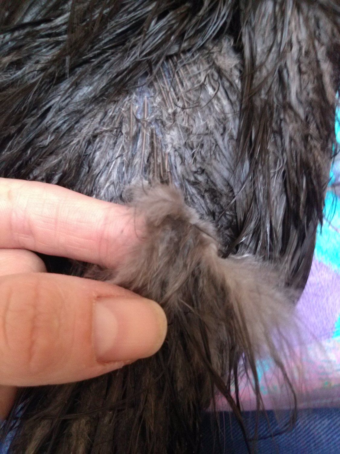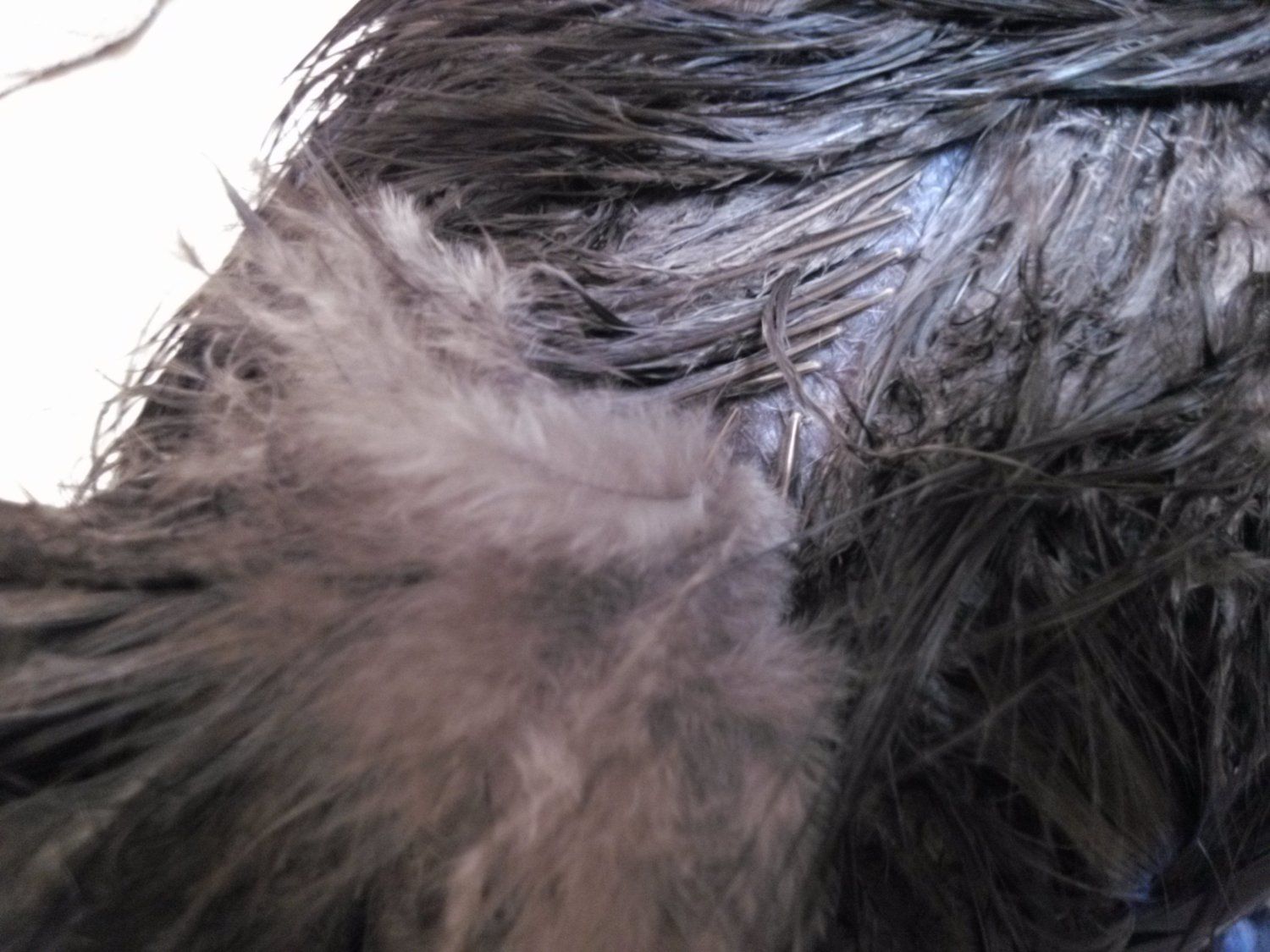 My splash has a lot of waxy pins on her head when I was washing her and I couldn't get them off as I have no fingernails..not a good night...:/