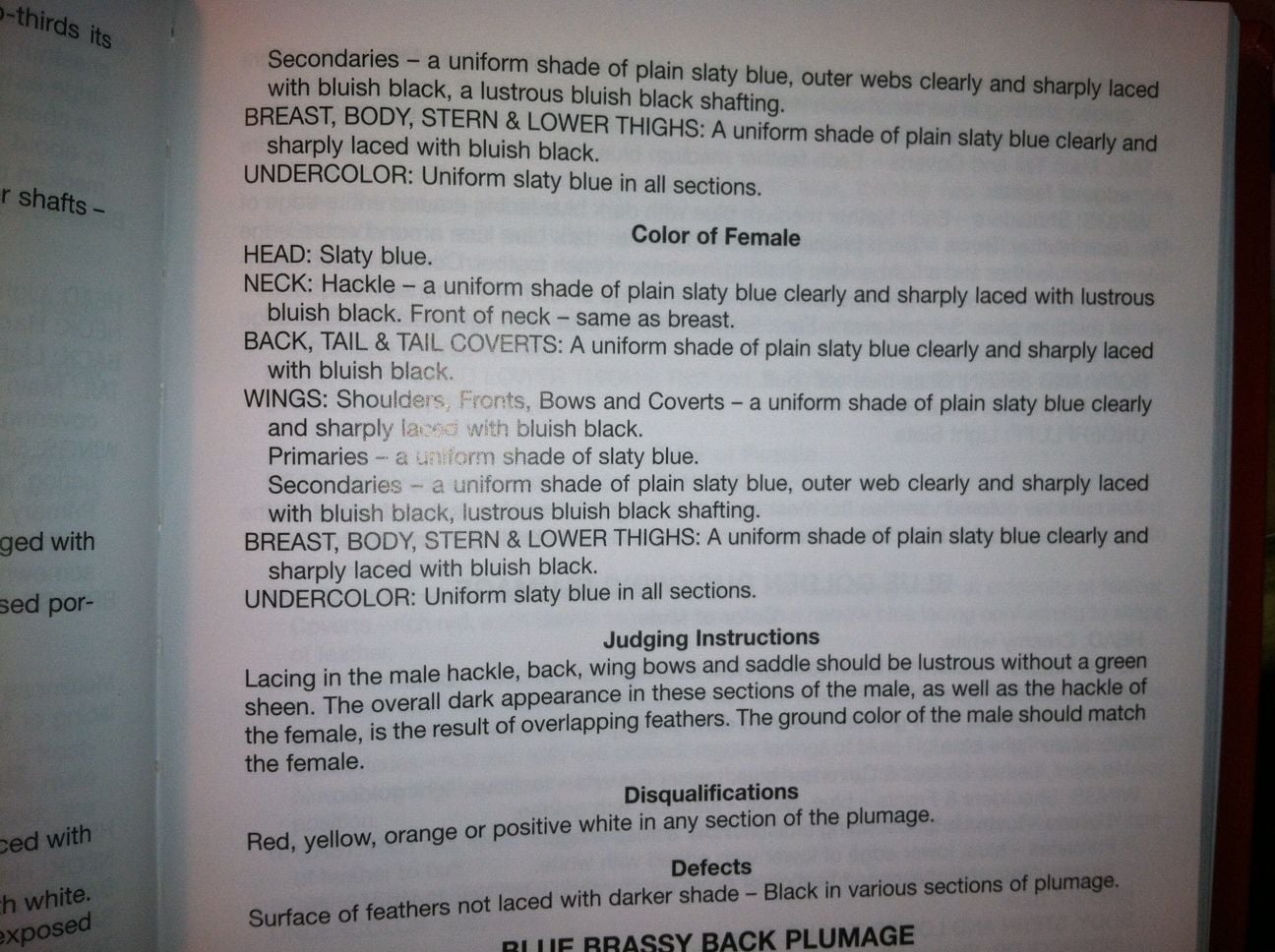 These are all blues.... were you going to post a black too? And if one of these was supposed to be a black, then you have what I have! I have blues that "look" black, but they are not. I keep them and use them with splash to help darken up the spots and it has worked great! Unfortunately you will probably still end up breeding more dark blues that look black which is undesirable for showing. Blues should have a lighter body, darker head and hackles. I have gone on ahead and shown my dark blues at shows, but next to the correctly colored blues-- they will never do well. Also, a judge can spot a dark blue vs black.