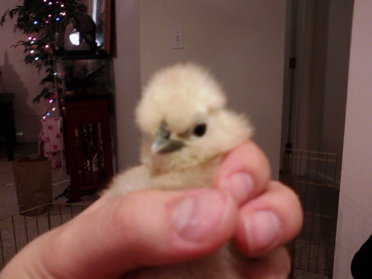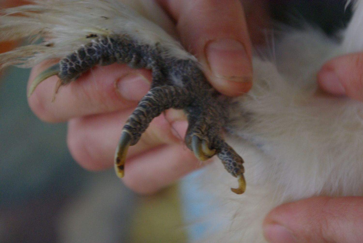 Yeah, That is fine. Nori was 5 weeks old when I bought her from the breeder.She kept walking off from me so it could have cause it to appear crooked. Will get her back out tomorrow and check to see, I still have to get my black hen cleaned up. Her chicks are around 5 weeks old now...do you think it will be fine to take them from her and put in the brooder?
