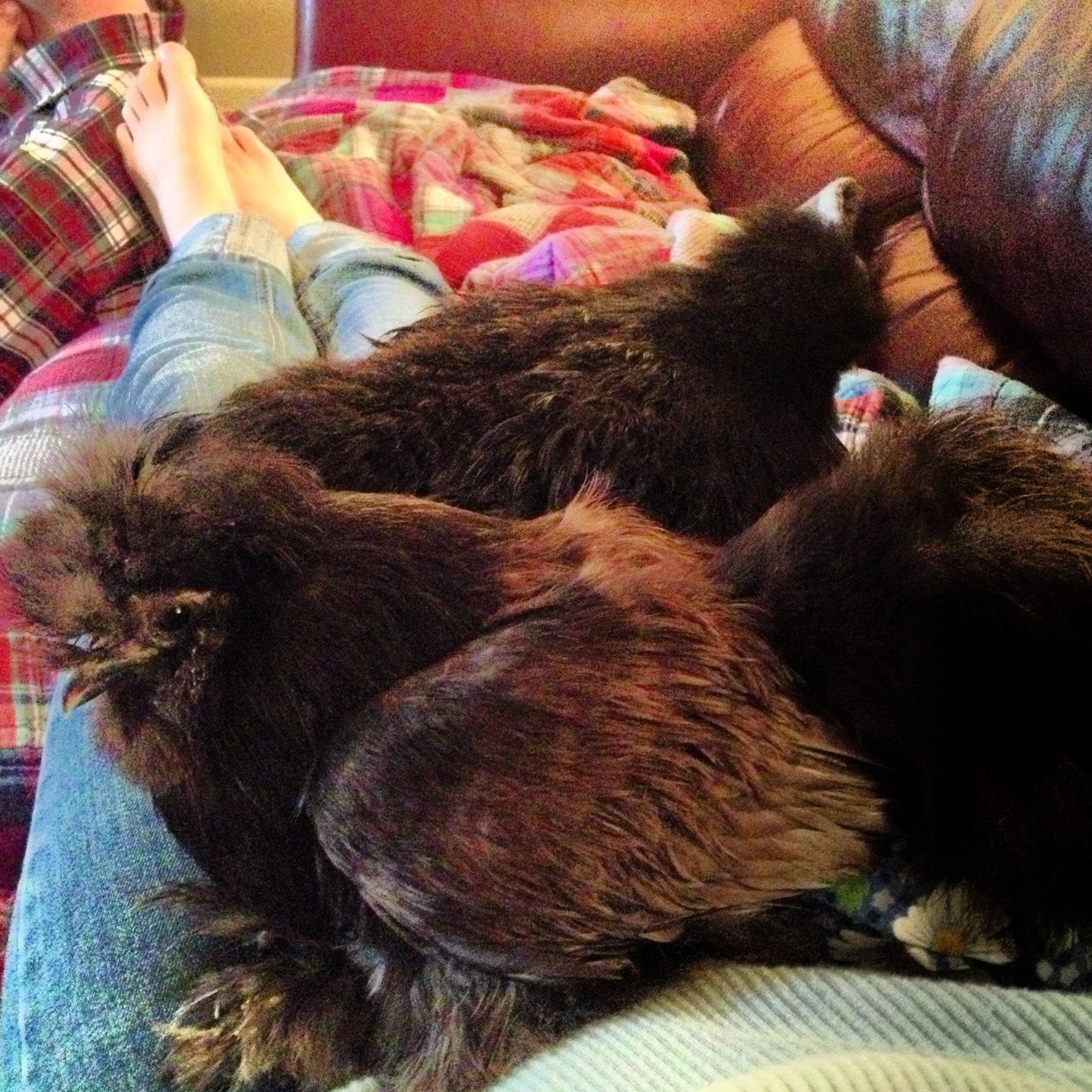 The one on my avy is a VERY unhappy leghorn barred rock cross that fell in her water dish.I have no idea how she managed to do that, since her water dish is a pickle lid.![]()