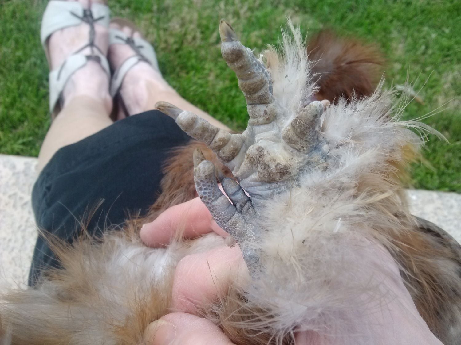 Absolutely agree. THIS is duckfoot. His feet actually look better with him on his back and gravity kind of flattens them out: Unfortuntely, this bird has it on both feet. Otherwise he would be a decent (for a project bird) chocolate tailed red.