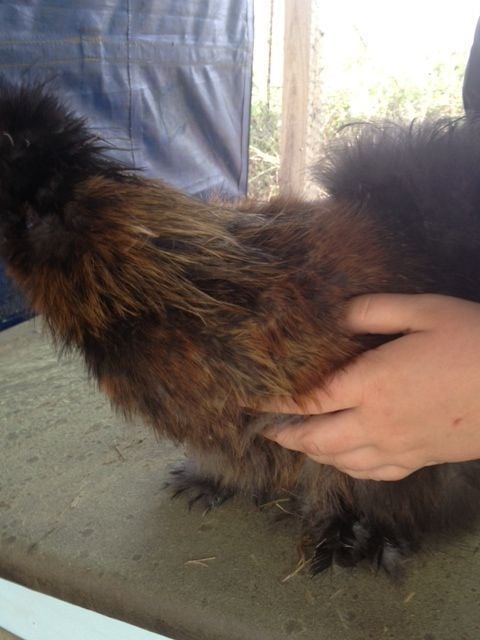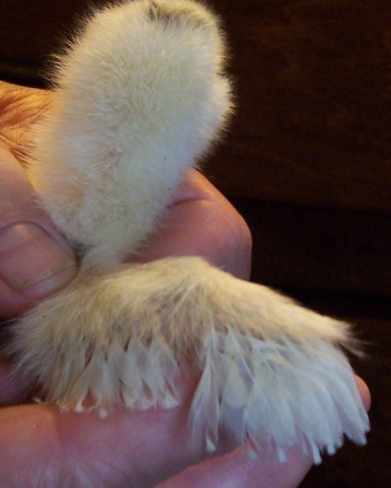 Wow those feathers are long! My friend's white looked more like her white baby, and she's a pure silkie.