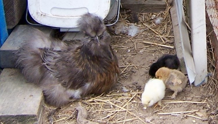 huh, maybe it will look normal as an adult but show up looking silkied as a baby? Unless it's just regular feathers but they look a little shredded. Did your raise the hens yourself?That chick is one of around 20 eggs I hatched in my incubator. They are all from a purebred Salmon Faverolles roo and purebred Silkie hens. There may be another with it in the box brooder, I haven't checked that closely. I have not been keeping Silkie roos and no one else around here has chickens.