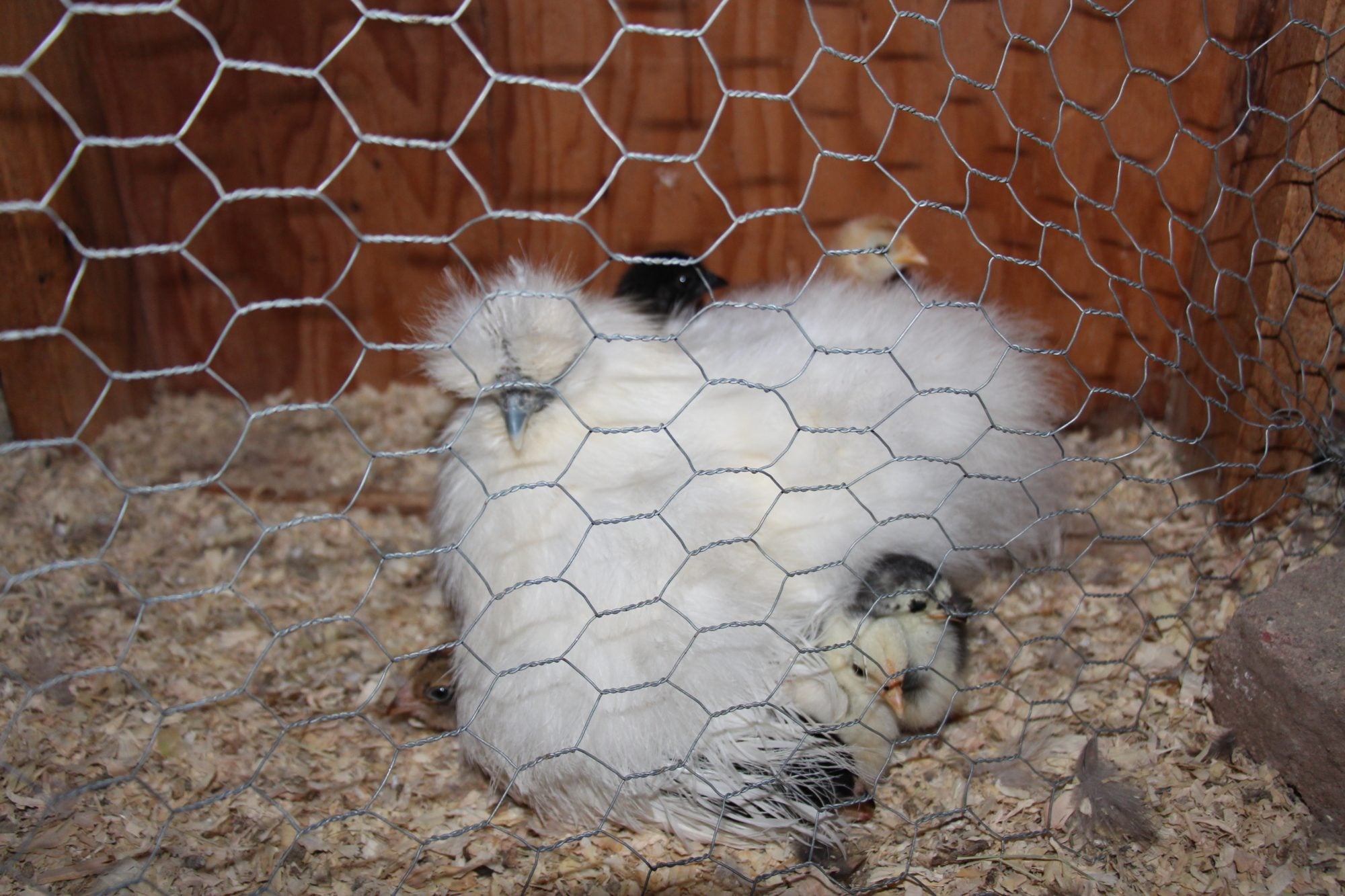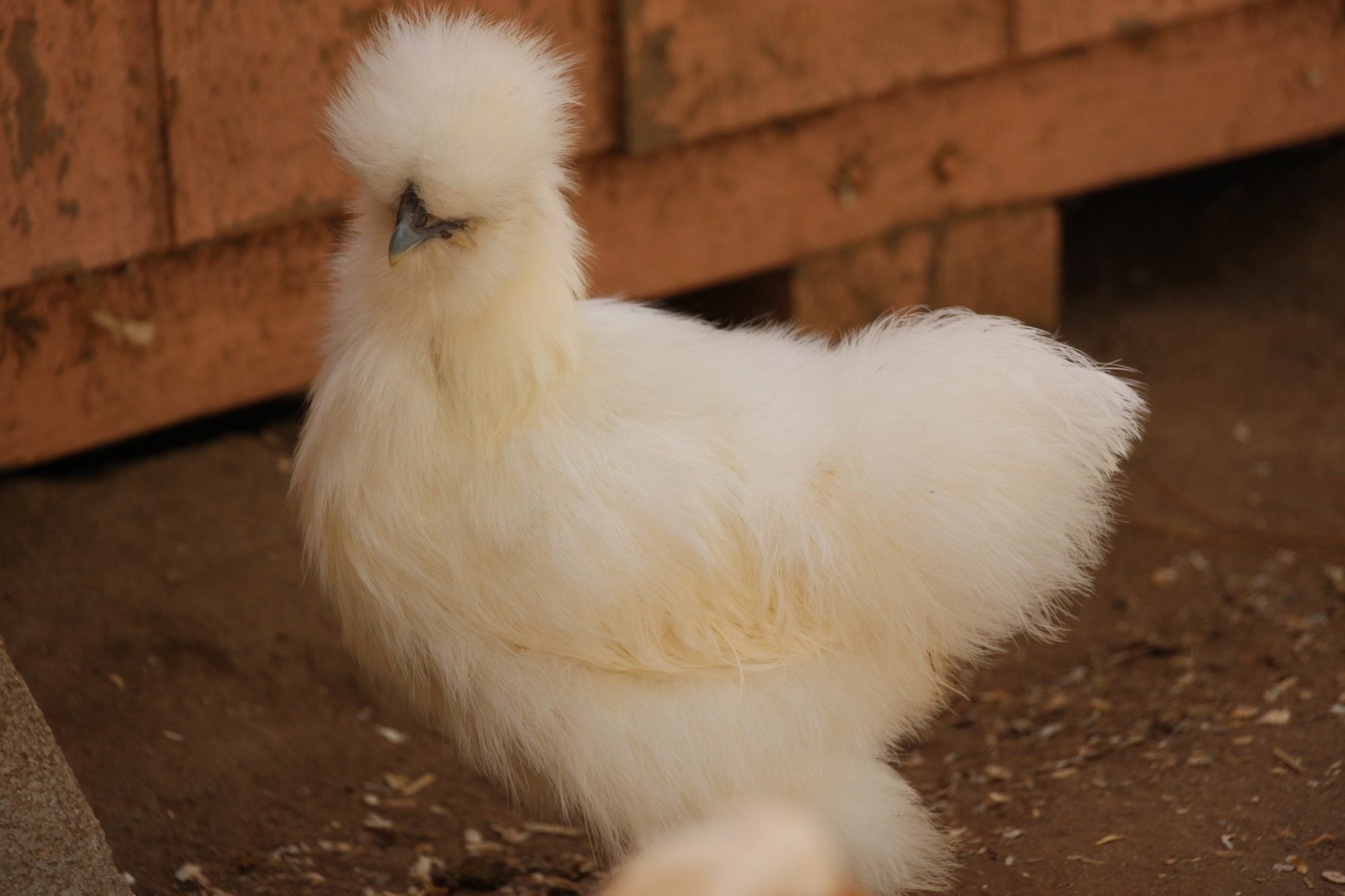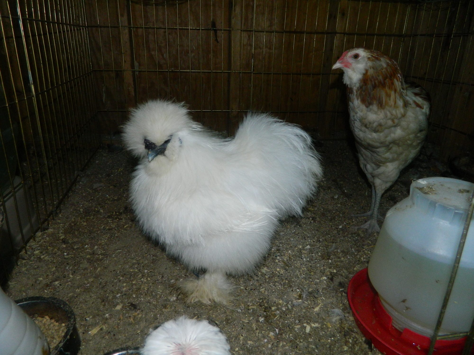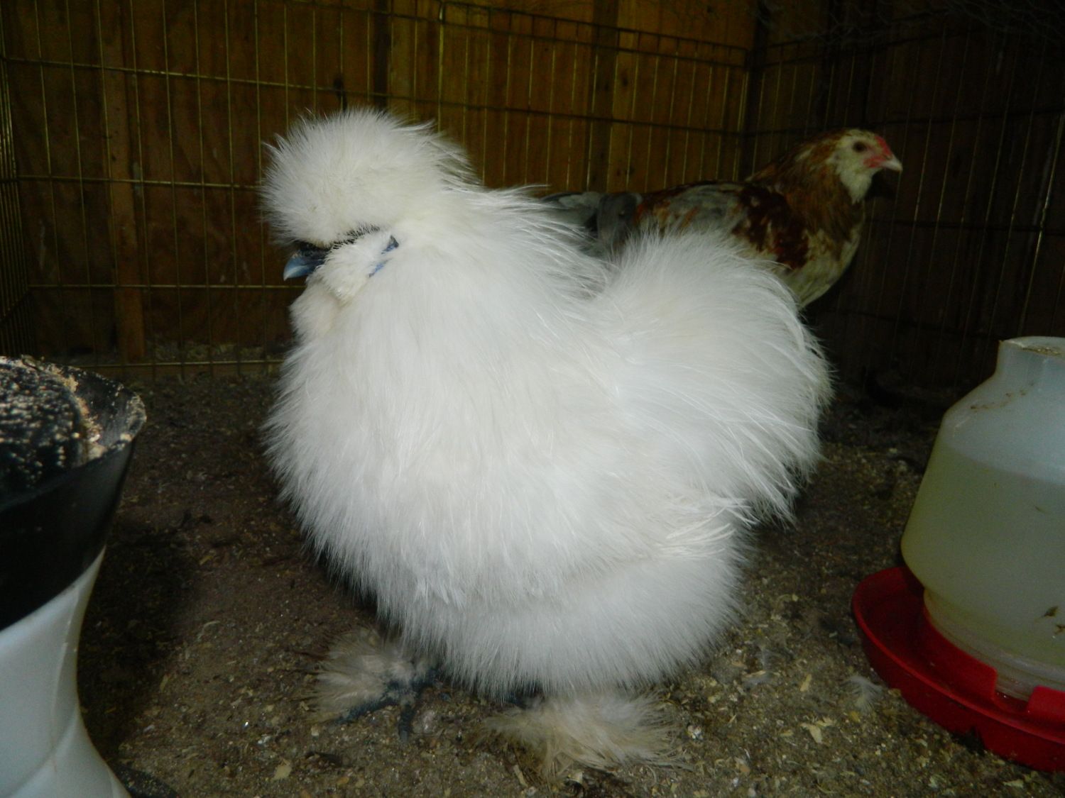 . Snowball my white hen (the rooster pecked out her pom-pom
