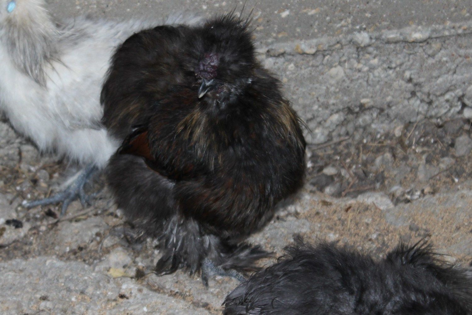 ALSO, what color is he? The woman posted him as a black but she didn't seem to know much about silkies. I thought he was a blue but once I got him home I noticed he looks chocolate? So is he a chocolate, a burnt black or a burnt blue? He does have a few copper streaks in his hackles.