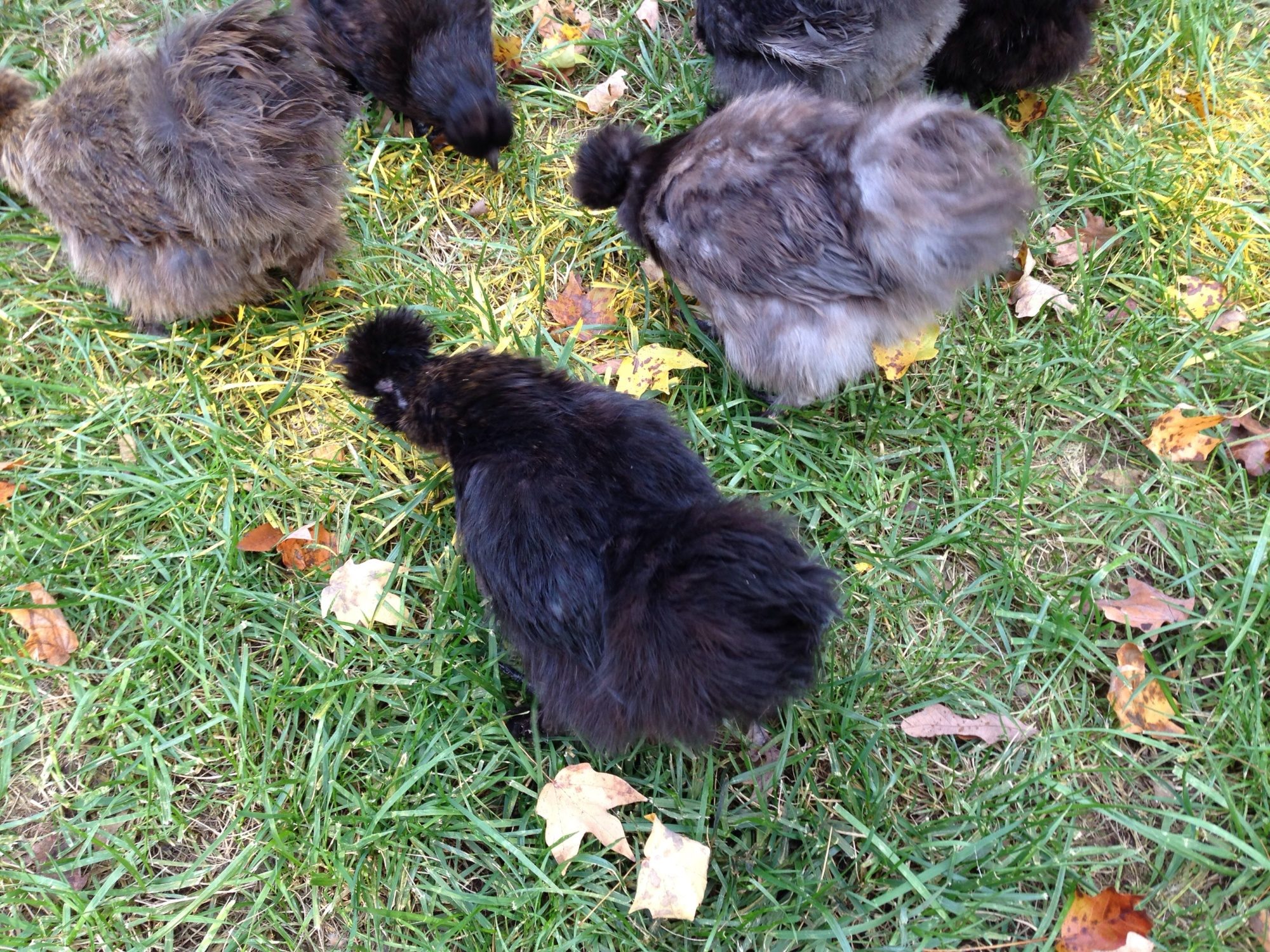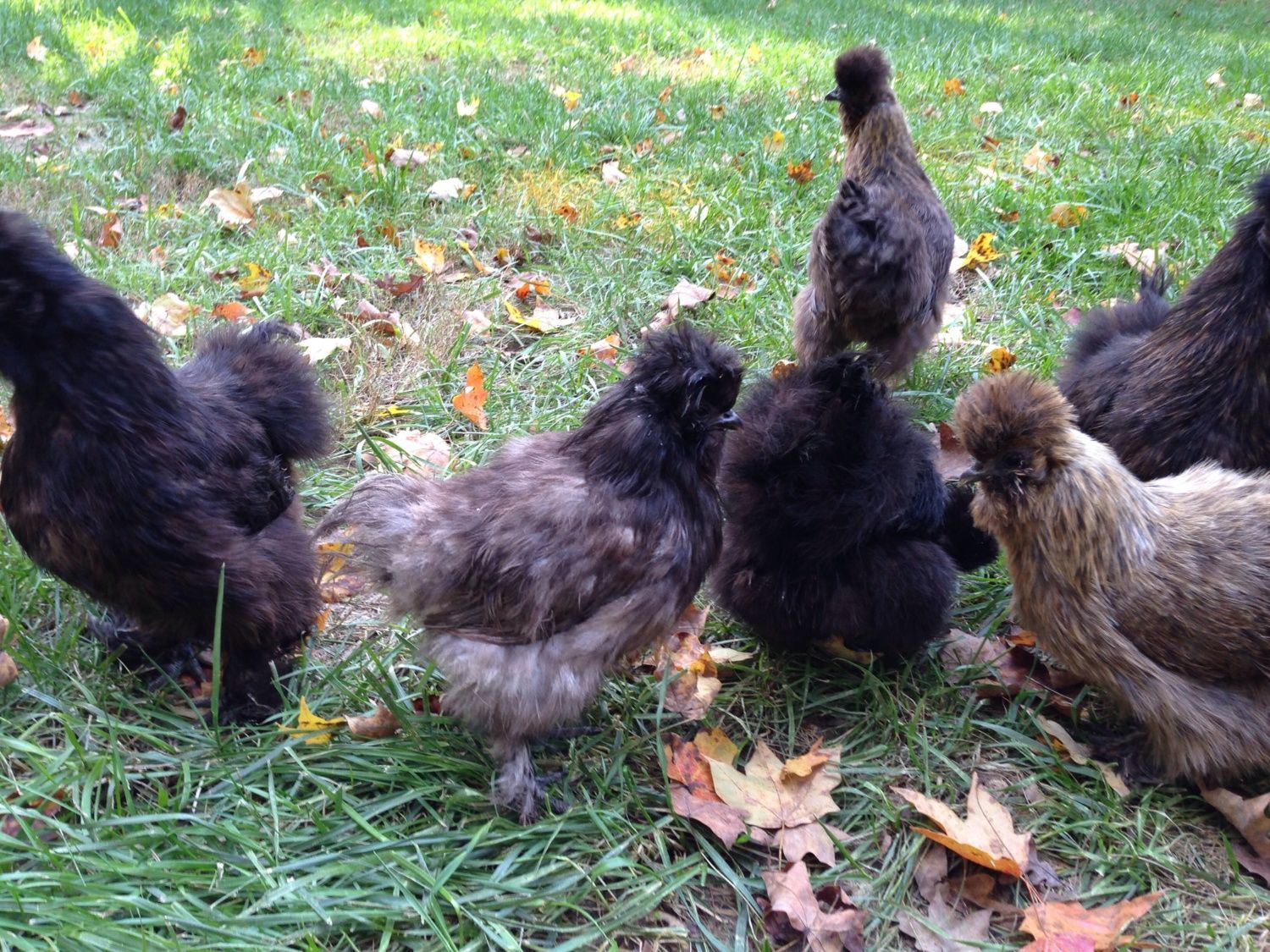 This seems to be the place where all the Silkie experts hang out so I figured I'd ask here rather than start a new thread. I accidentally acquired 11 Silkies and they're all different colors. There's some obvious blacks, but some I have no idea. There is a roo in the bunch so if I shouldn't breed them please let me know. Sorry for the crappy pics, they were running around like crazy!