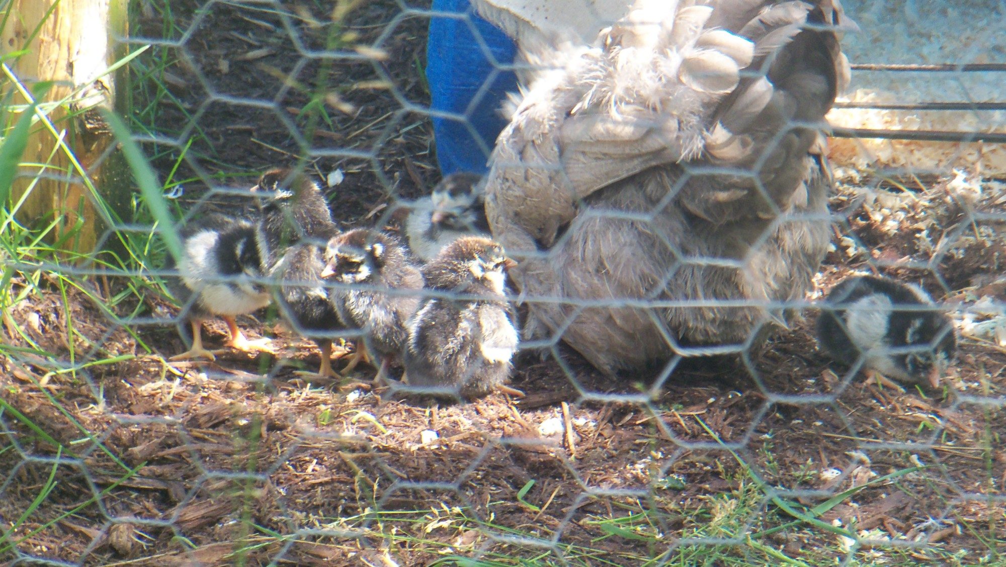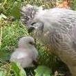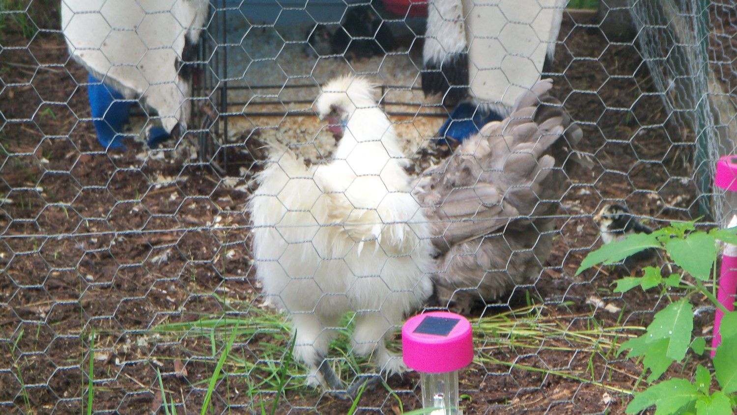 yet sure what she is but she is part silkie. I dont have any pictures of the partridge silkie but i do of the gray female Isabow, and of my white silkie rooster named snowball. as you can see Isabow raised some Silver laced, but as they grew Isabow had her very own little white fluff ball and the silvers where about 3 months and
