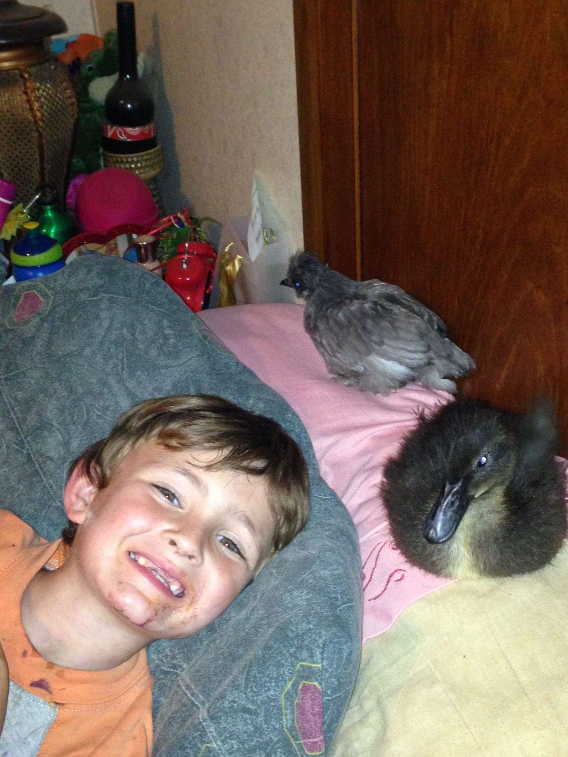 this is my son with his rouen duck and his silkie we just bought. can anyone tell me what kind os silkie it? and we want to enter the cutest silkie contest.