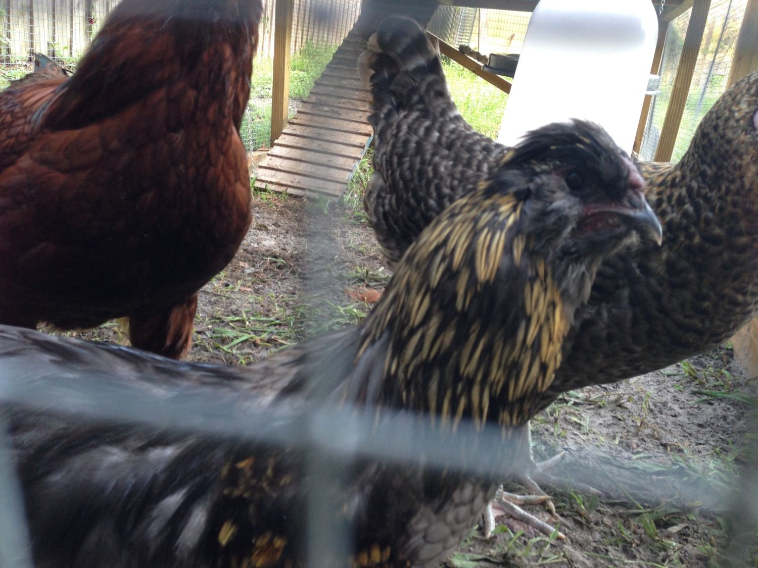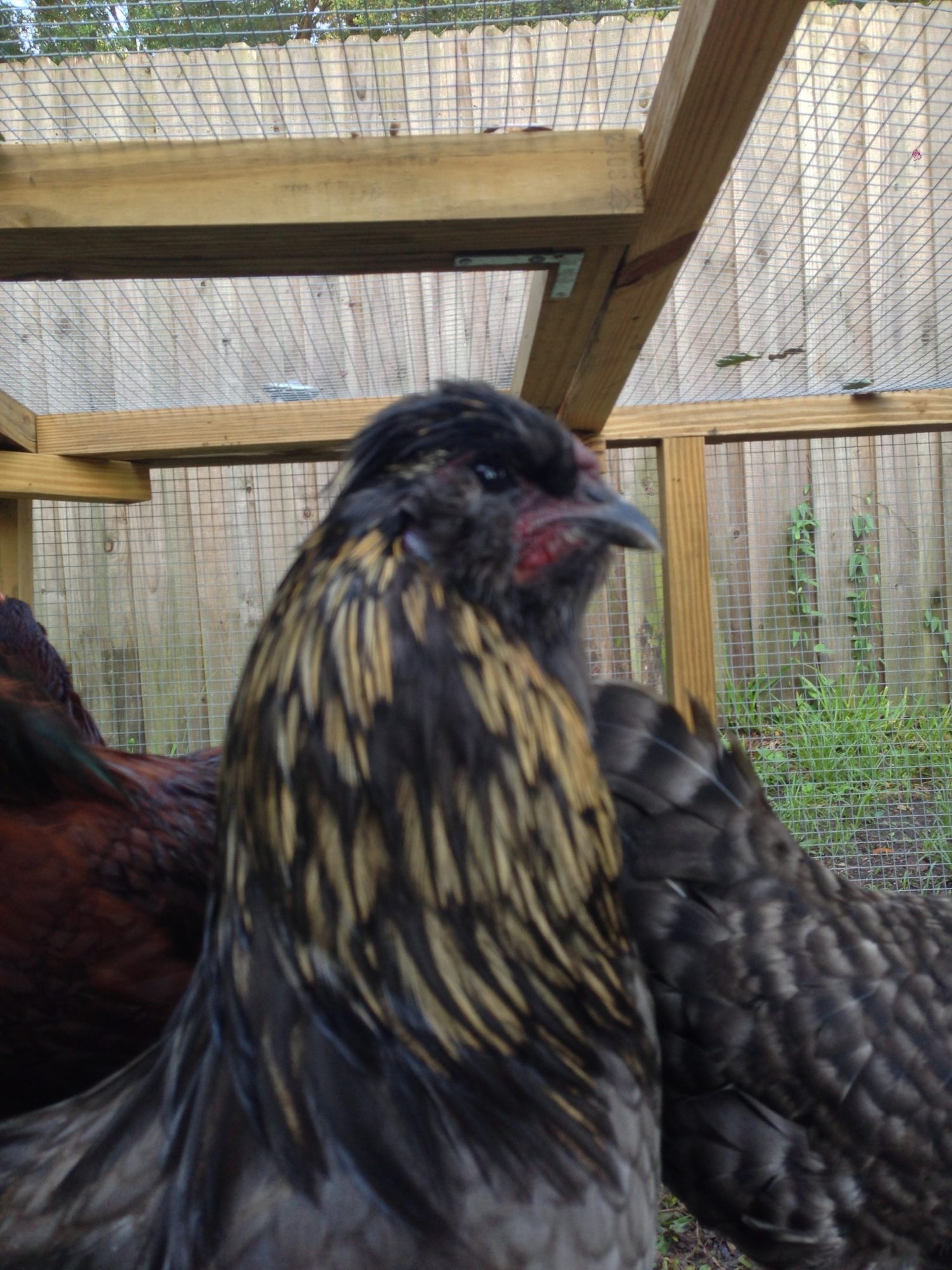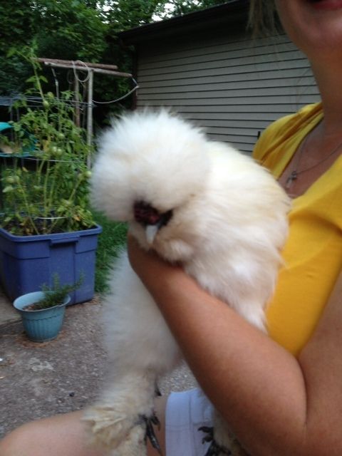 Mother is a silkies, I have 1 black, 1 blue, and 1 partridge. and 2 Nankin roosters.