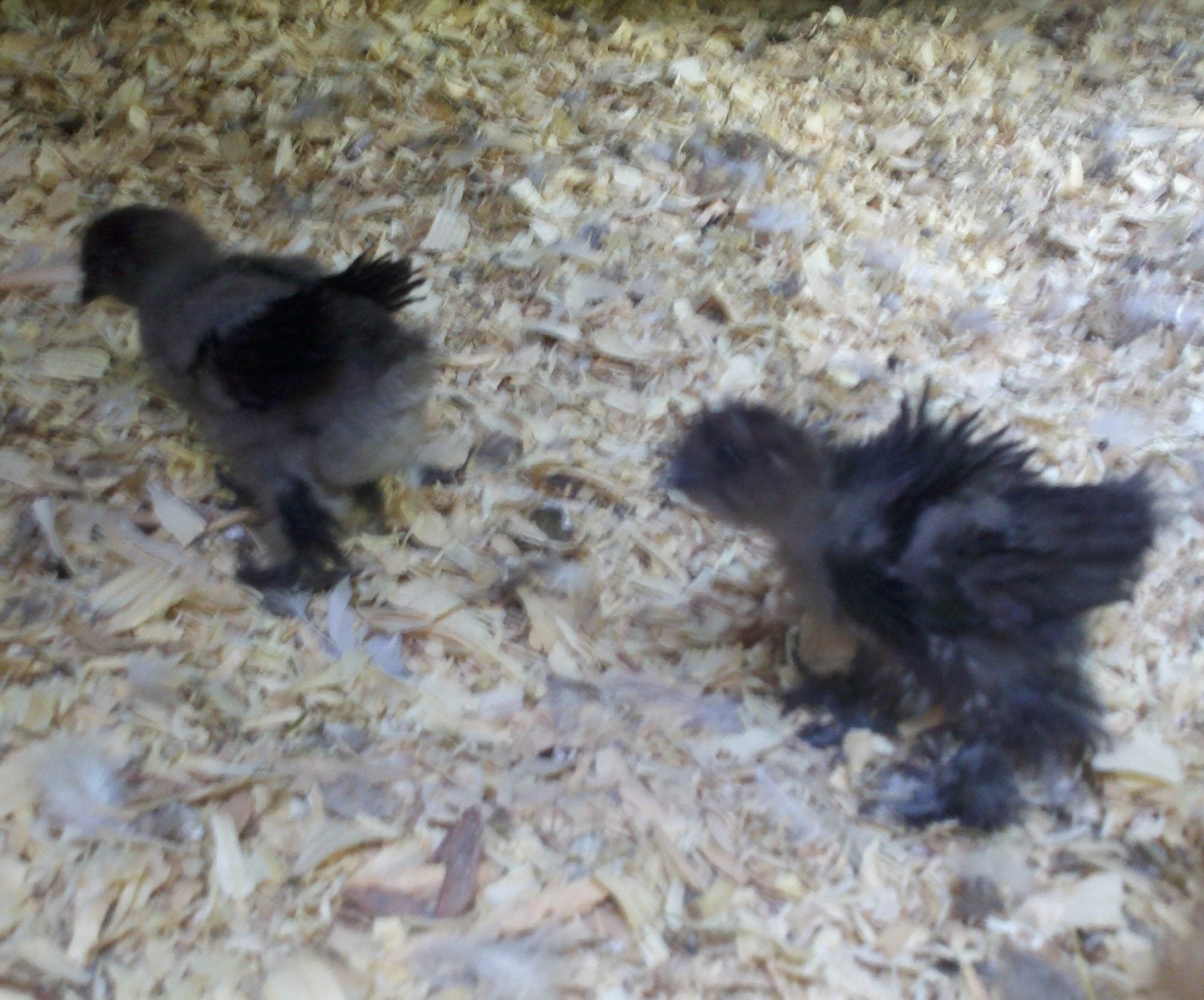 )I think I'll hatch a big batch of this cross when the hen starts laying again. I just thought it was odd that all of the chicks came out looking identical. And they're all black! The Silkie rooster is buff (smutty), the hen black, so I though some partridge chicks would pop out. But, I'm a genetics dummy so