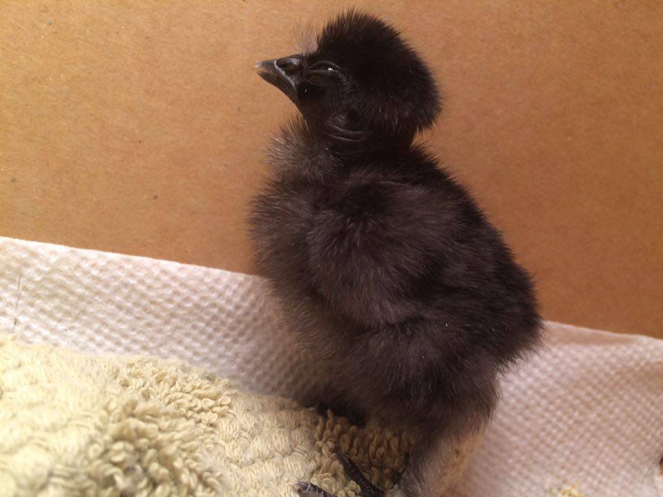 This is my newest hatchling. A black showgirl. Hen brought this one and a paint turken chick out the other day. Unexpected!