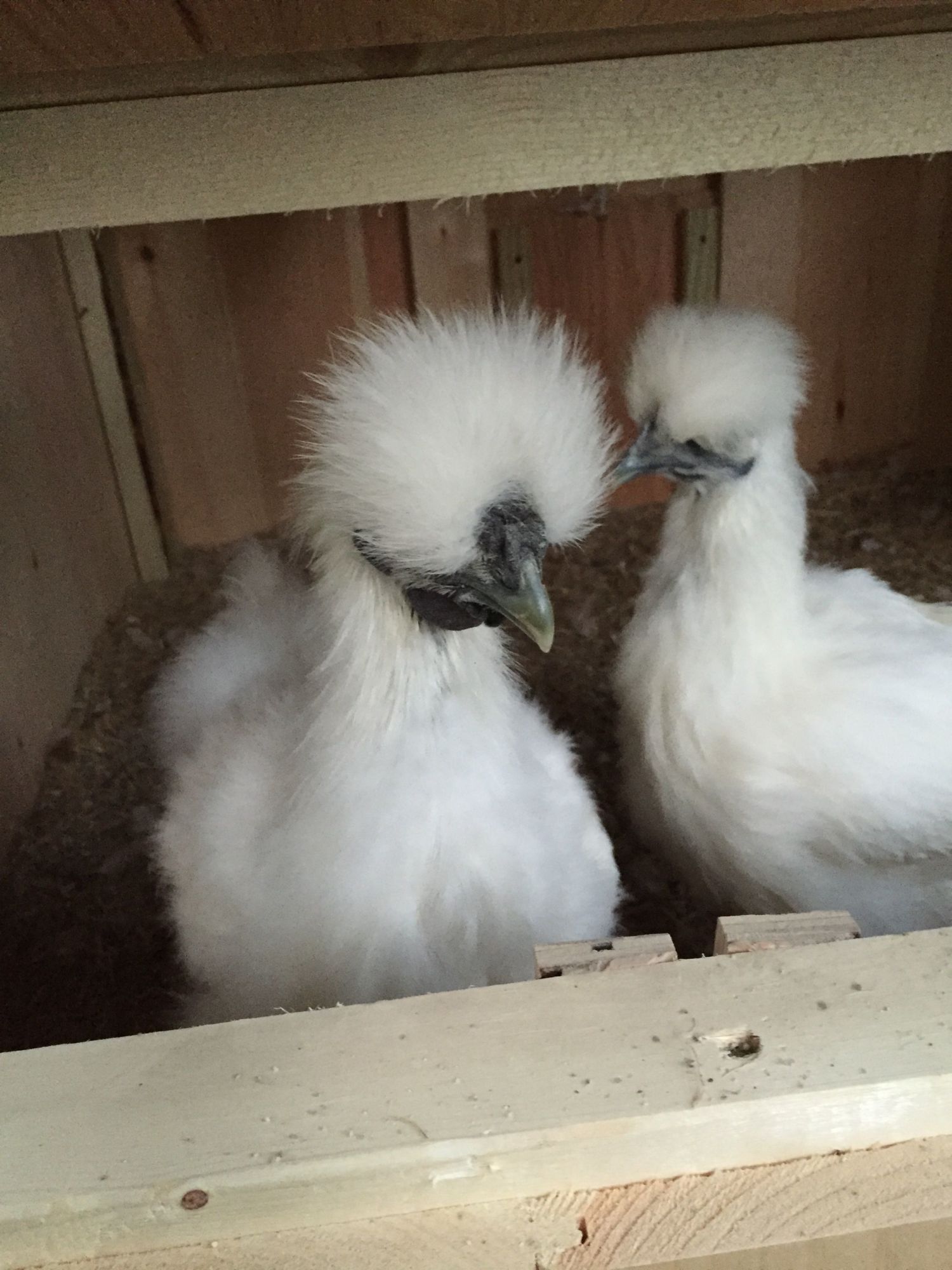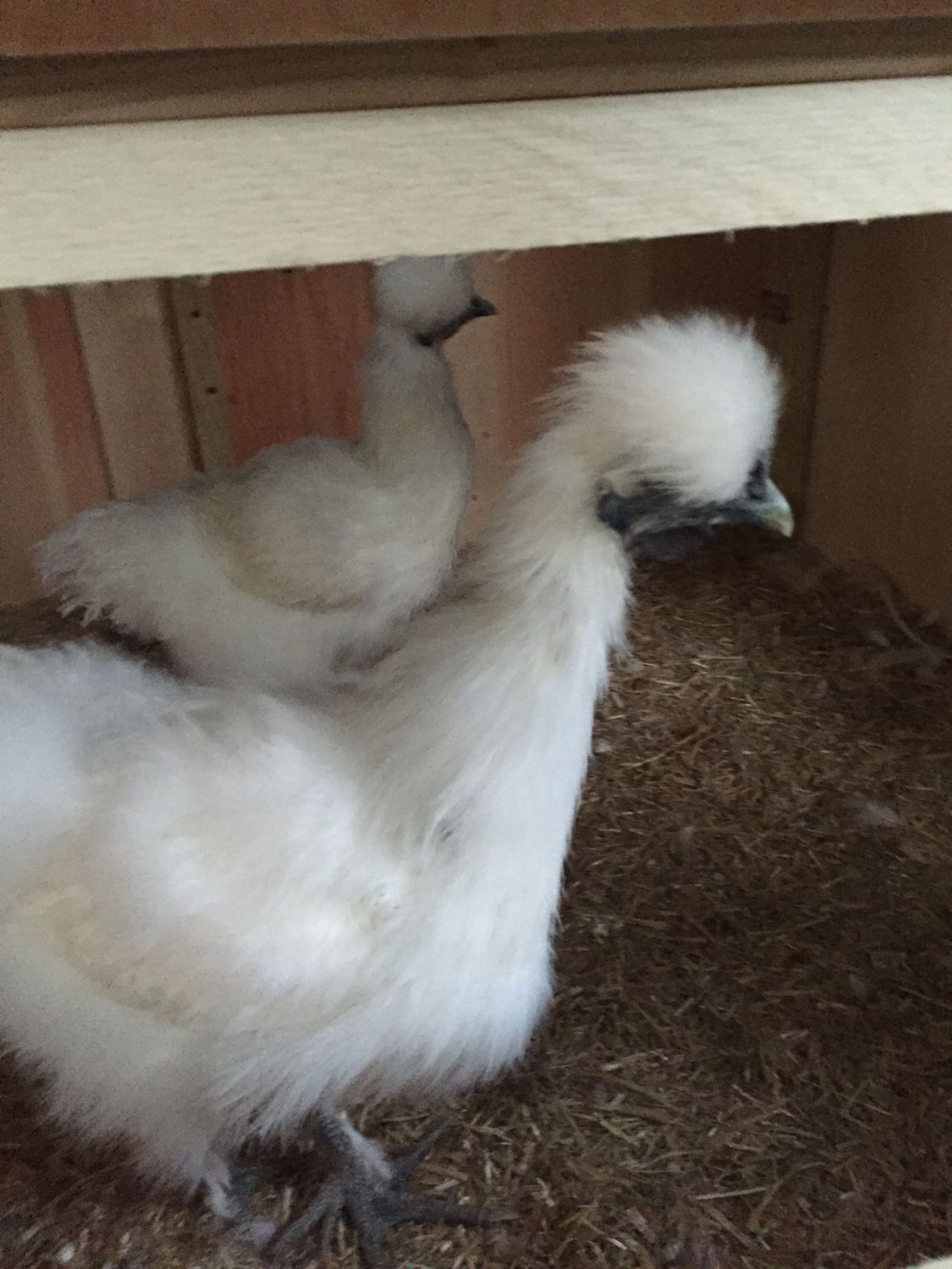 Ok, I know that Silkies are very hard to determine the sex, but I am seriously convinced I have a male! I got these 2 silkies when they were 2 weeks old and now they are about 13 weeks. Porkchop, (whom I believe is male) is much larger and has a very visible comb, waddles, and acts way different from all of my females. I realize that this does not make it a male but I was just looking for opinions :)