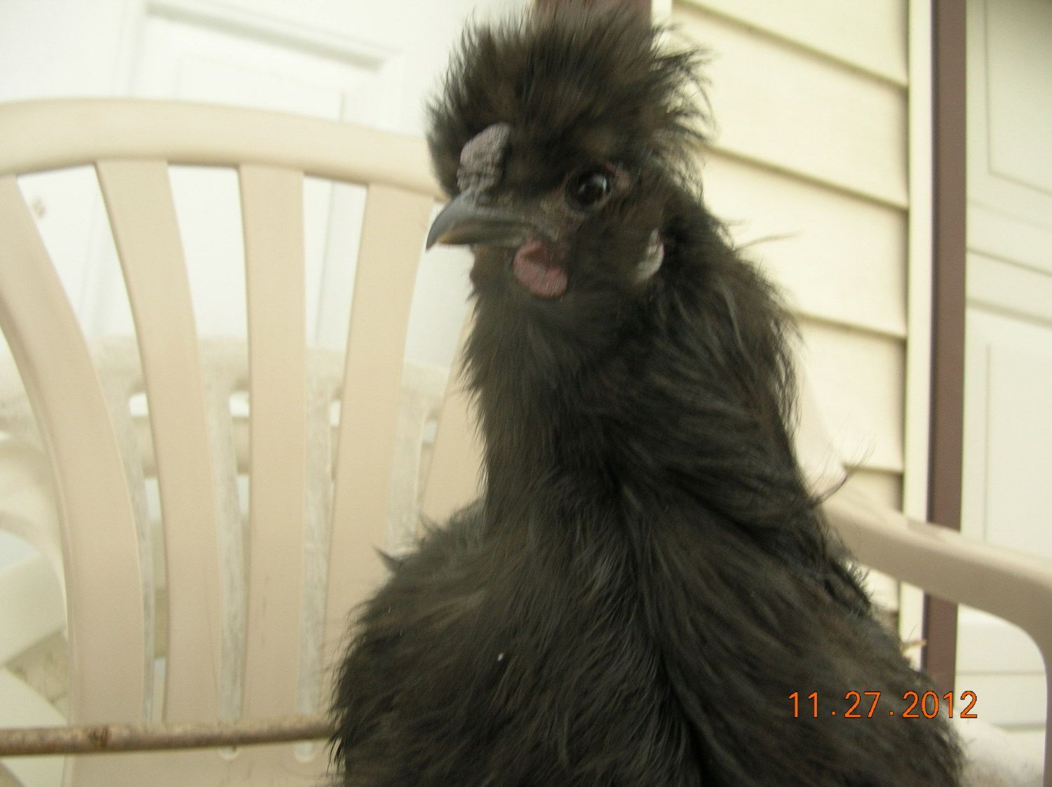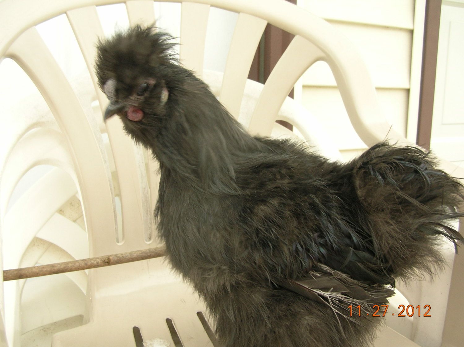 This is my first year with chickens. Got our first RRs in april. The I got 2 silkie chickens late july, they were almost a month old when I got them. 3 months ago I sent one of them back to the farm because he was crowing! Now the other is sounding like a duck squeeky toy that's been stepped on. The person I got them from said they were both female but it's looking like they were both roos. She did take the first back and replaced it with what she thought was a hen now the older one is crowing. UGH! Just when I was starting to look for the first egg! I really love this one but don't want any roos! So docile more like a lap dog than a chicken, really patient with my kiddos too. The pictures don't do justice, this one has beautiful teal green/blue feathers on part of the tail feathers and mid section. What does everyone think, how do you tell if its a roo? Onyx is a little over 6 months old.