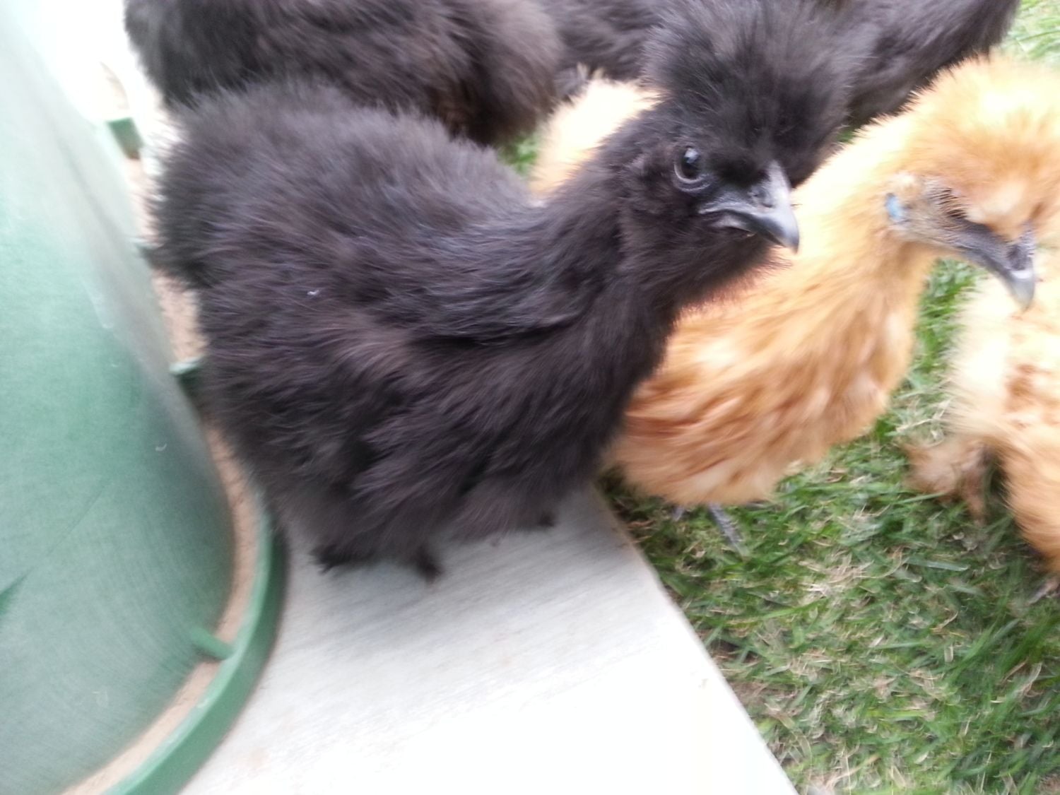 The bigger buff I follow the most with the camera... roo, right? And is that a roo noise, or is it just a chicken noise? I've never had chickens before, so I really have no clue! Up until a couple weeks ago I've just had peeping and clucking occasionally. I want to make 100% certain boys are boys before I rehome them, I'd be sad to get rid of one of my favorites and then find out he was a she.