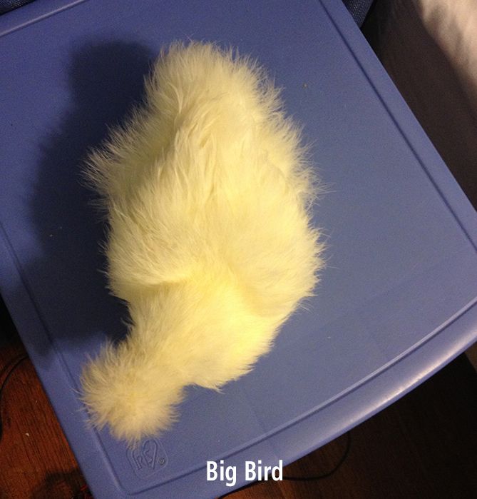 Now I'm wondering maybe if Gracey is REALLY a girl (the blue/black)... because the back of his neck feathers are more like the hen Sharon showed me than like Albedo's or Willow's (the feathers swoop together instead of swooping up and out).... There's not really any streamers... hmmmm. I don't wanna get my hopes up... but now I'm wondering...