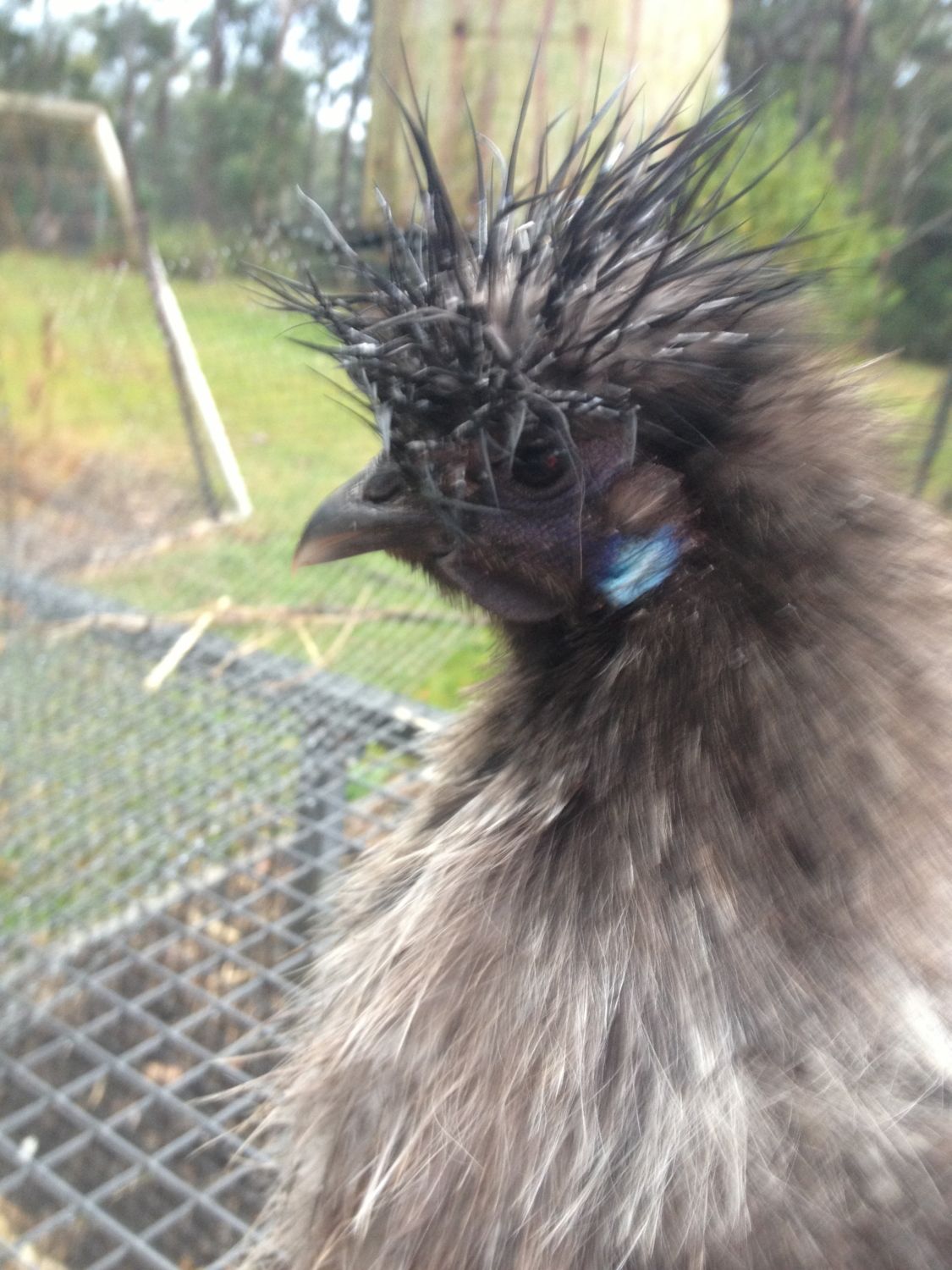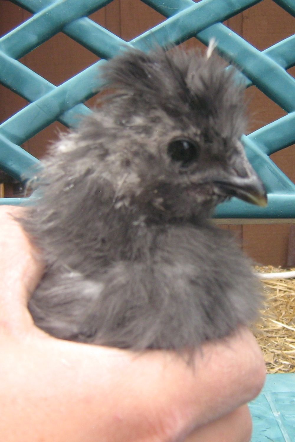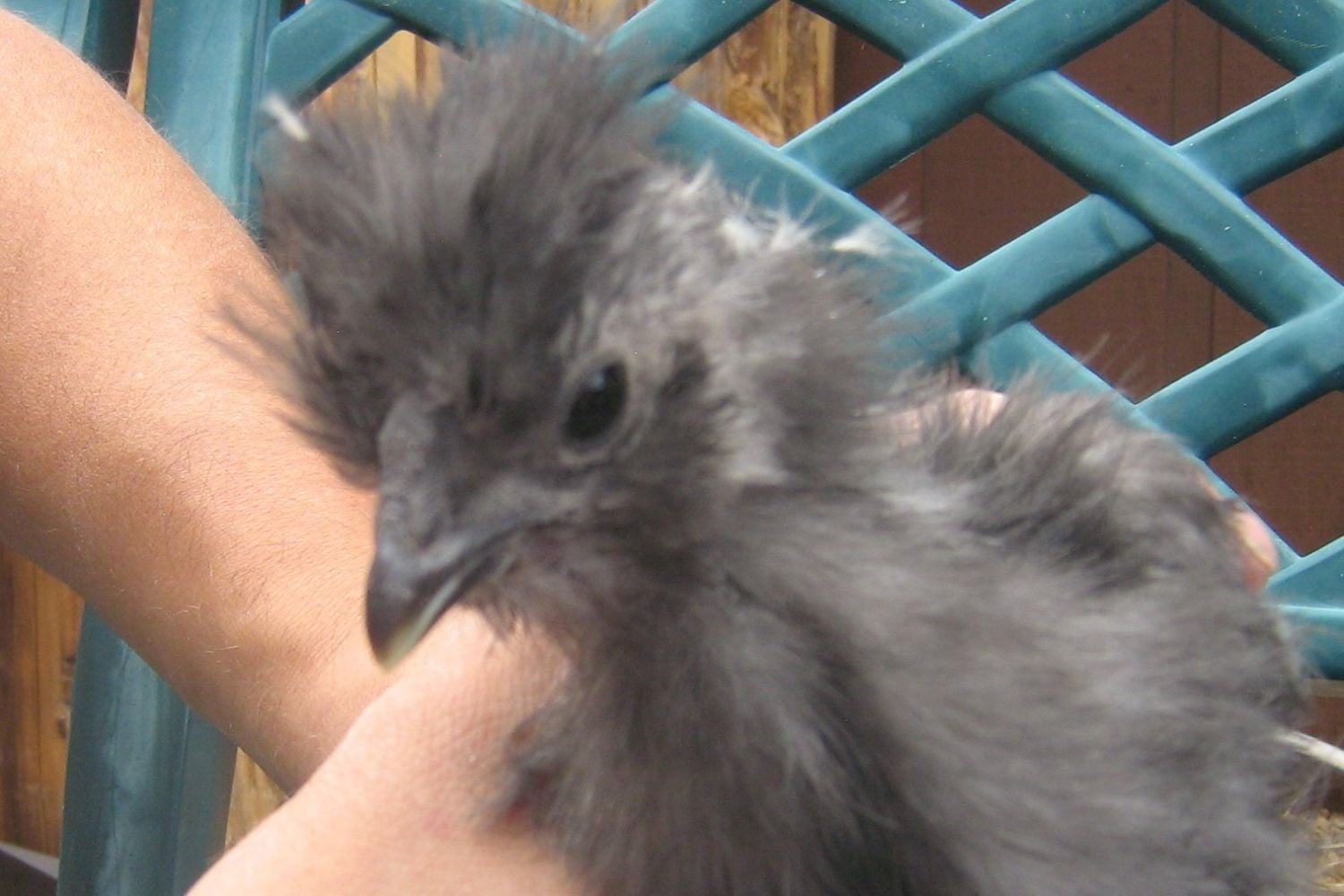 #4 Gray silkie named Little Edie. She seems like a pullet to me. She is very docile.