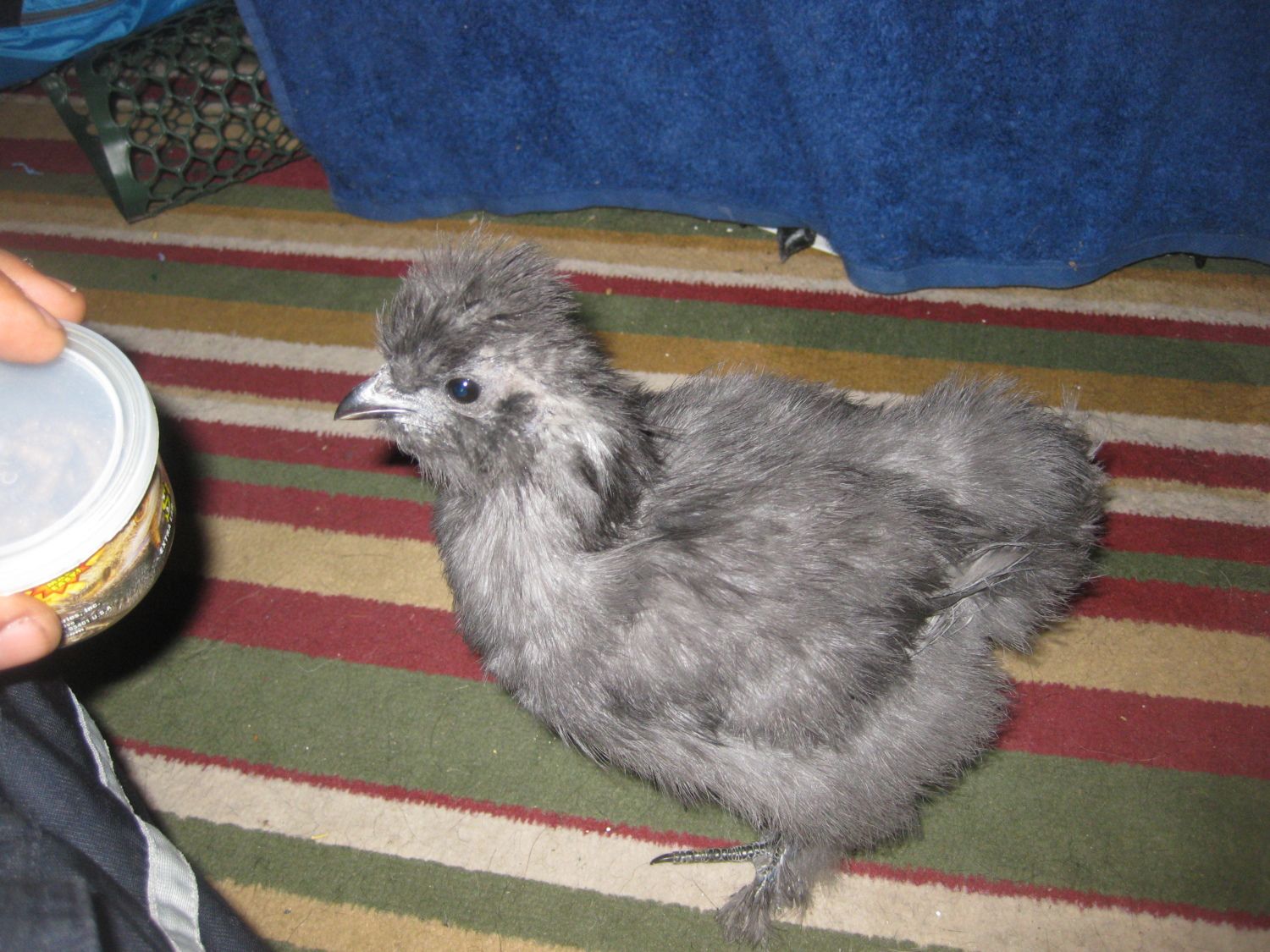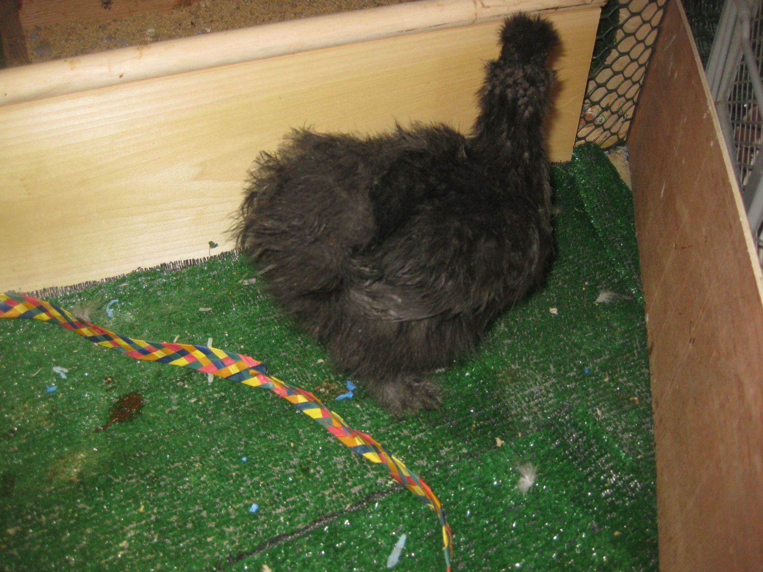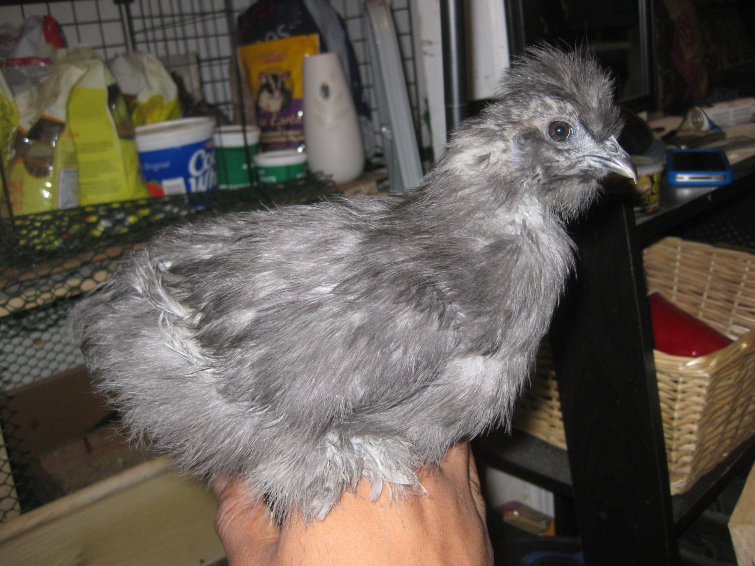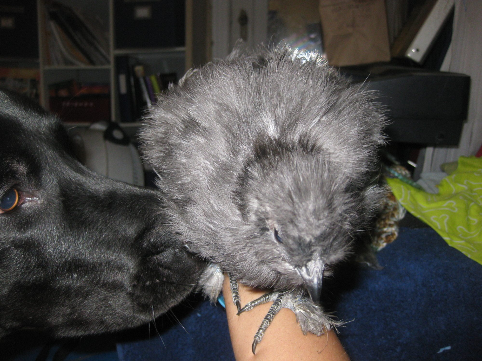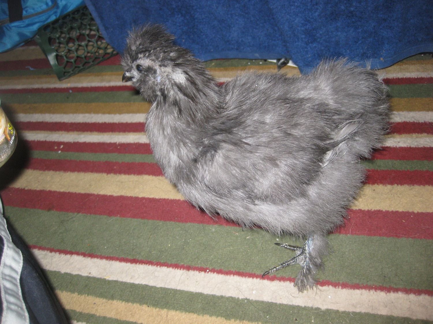My black silkie. Started out as the smallest and is now the largest. Starting to grow a comb but no wattles.