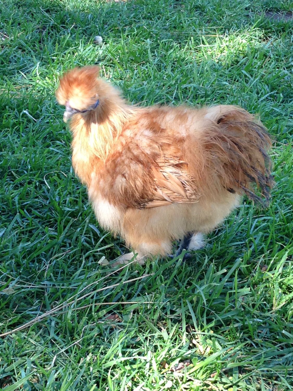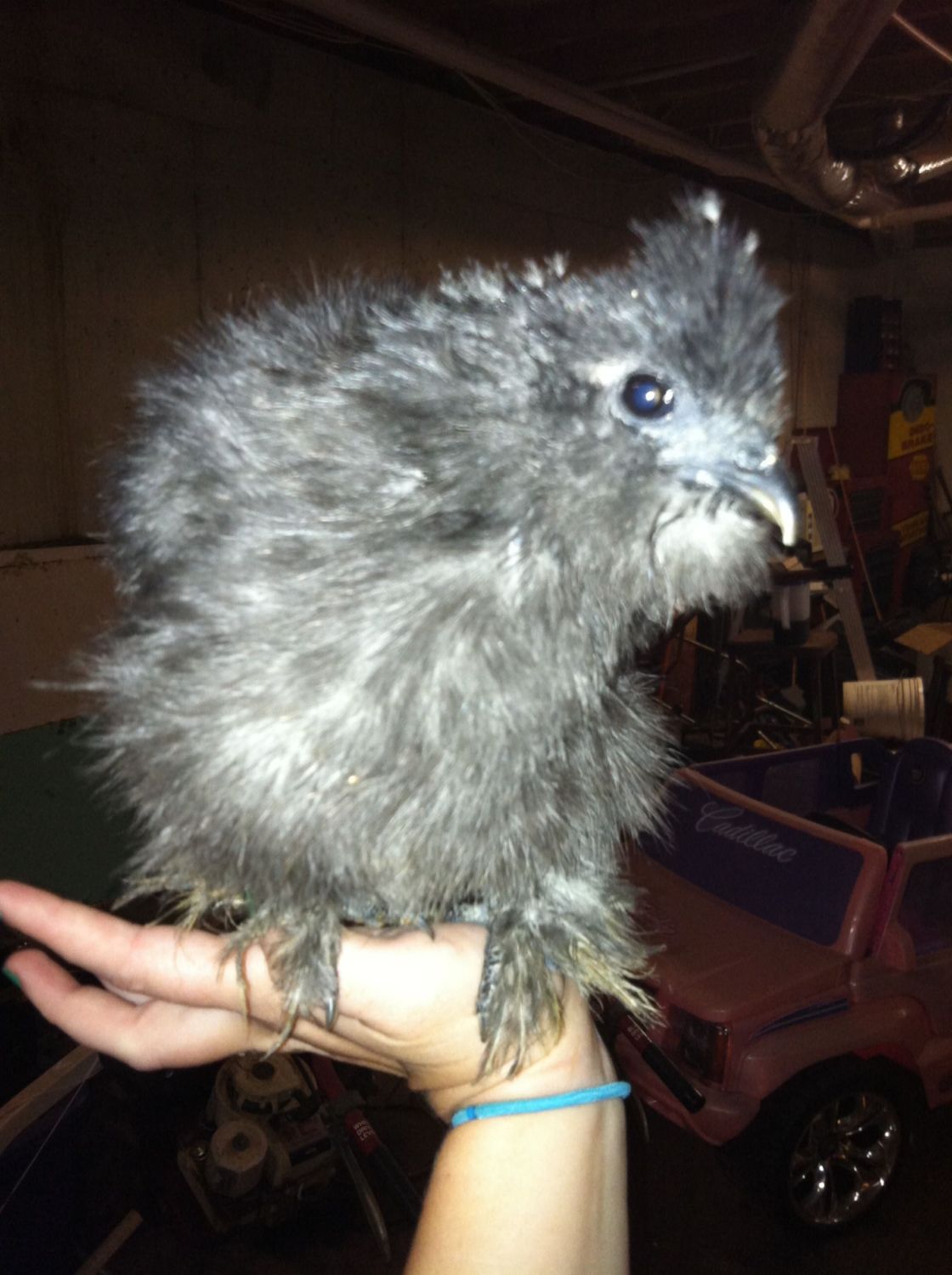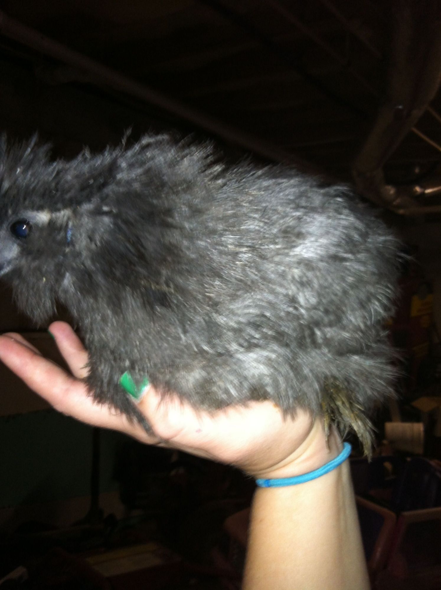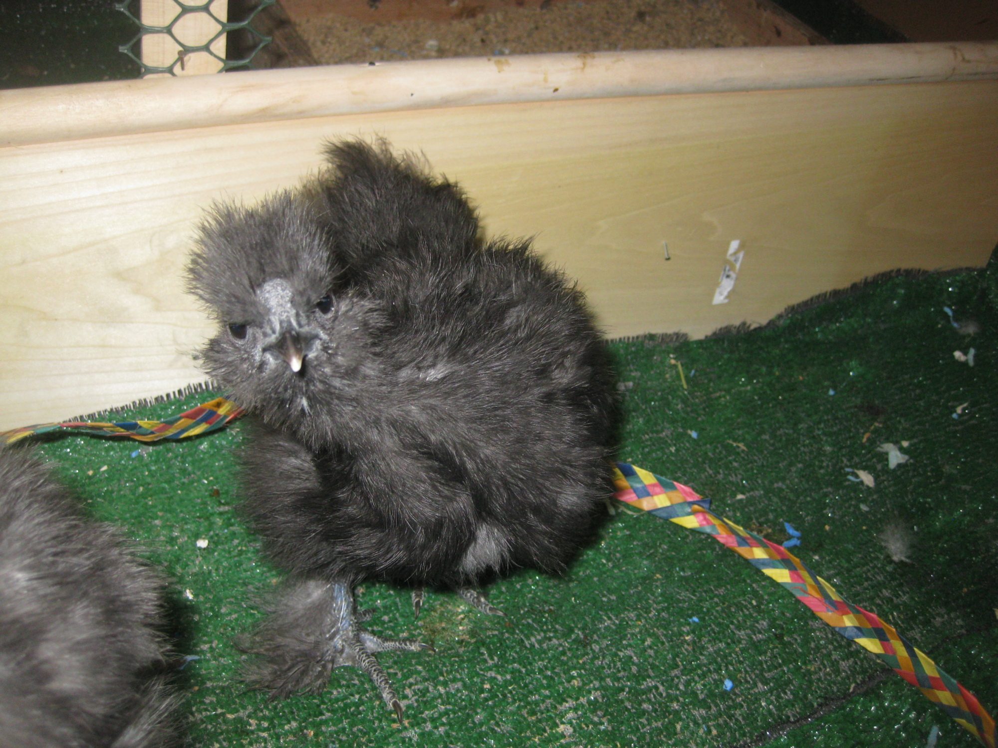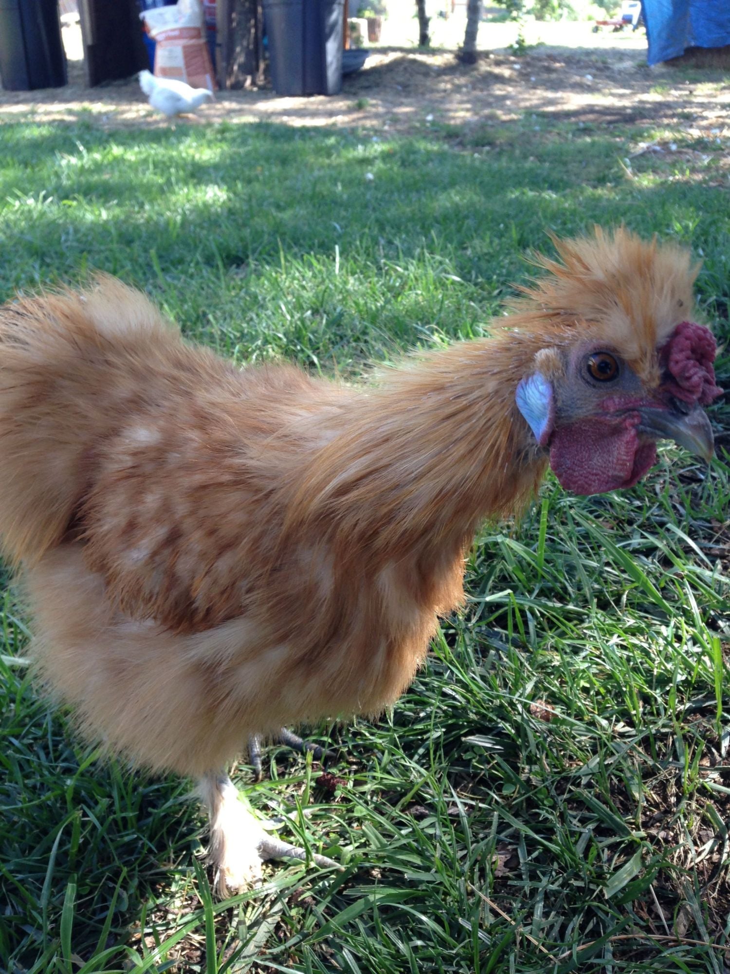 My black silkie. Started out as the smallest and is now the largest. Starting to grow a comb but no wattles.
