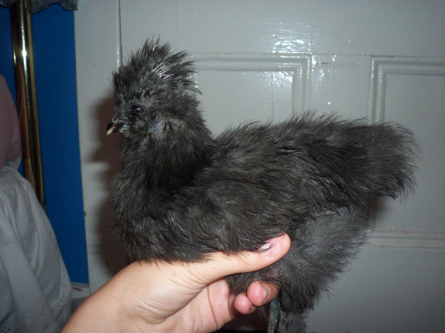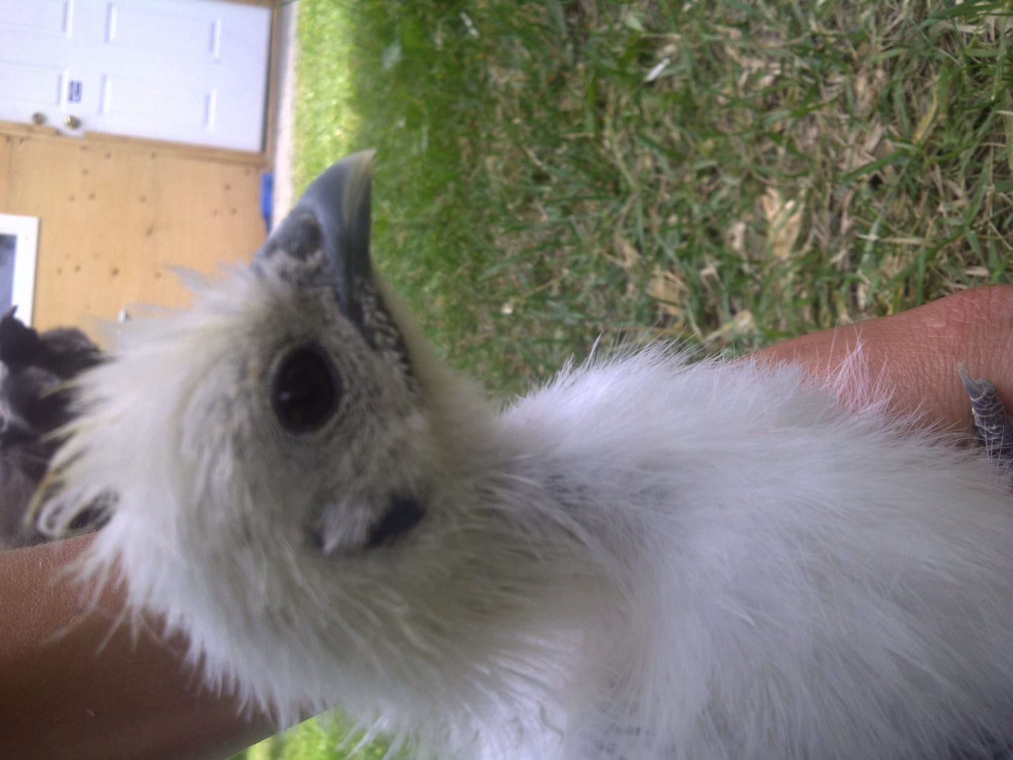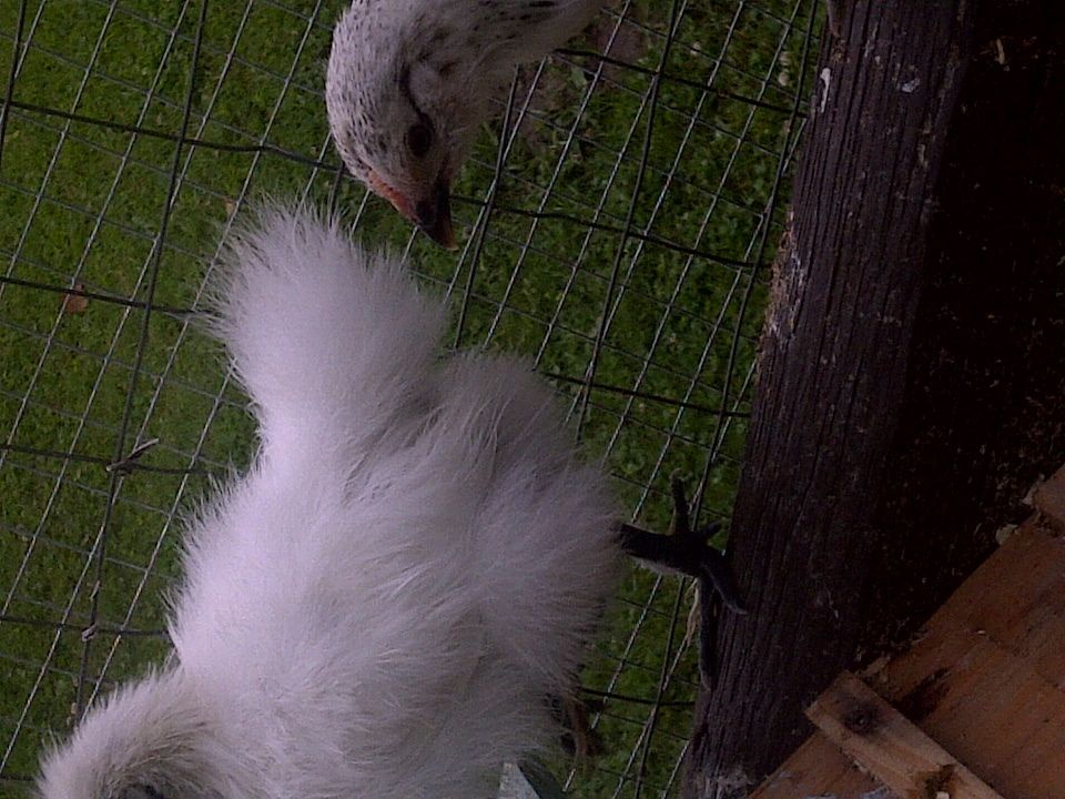 I have six silkies, all are 11 weeks old. One has been crowing for a little over a week (no photo of him here), and I have my guesses about several others. I actually think they're almost all roos. One white and one buff I'm really hoping are pullets
