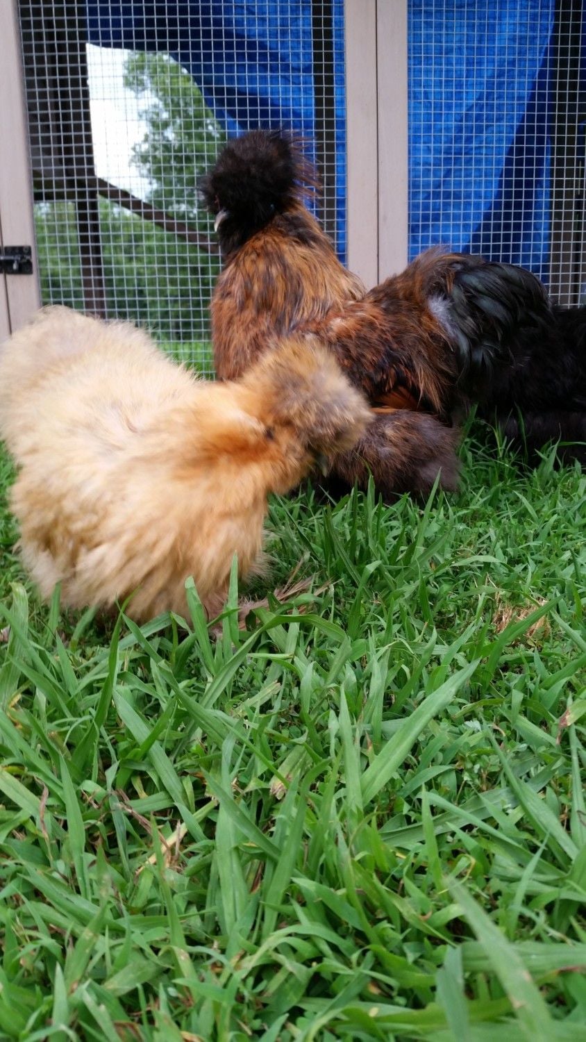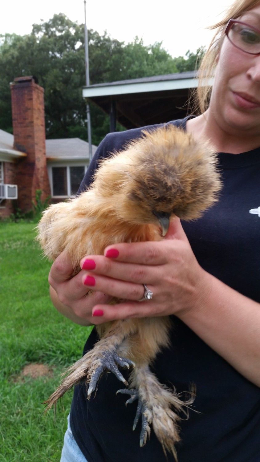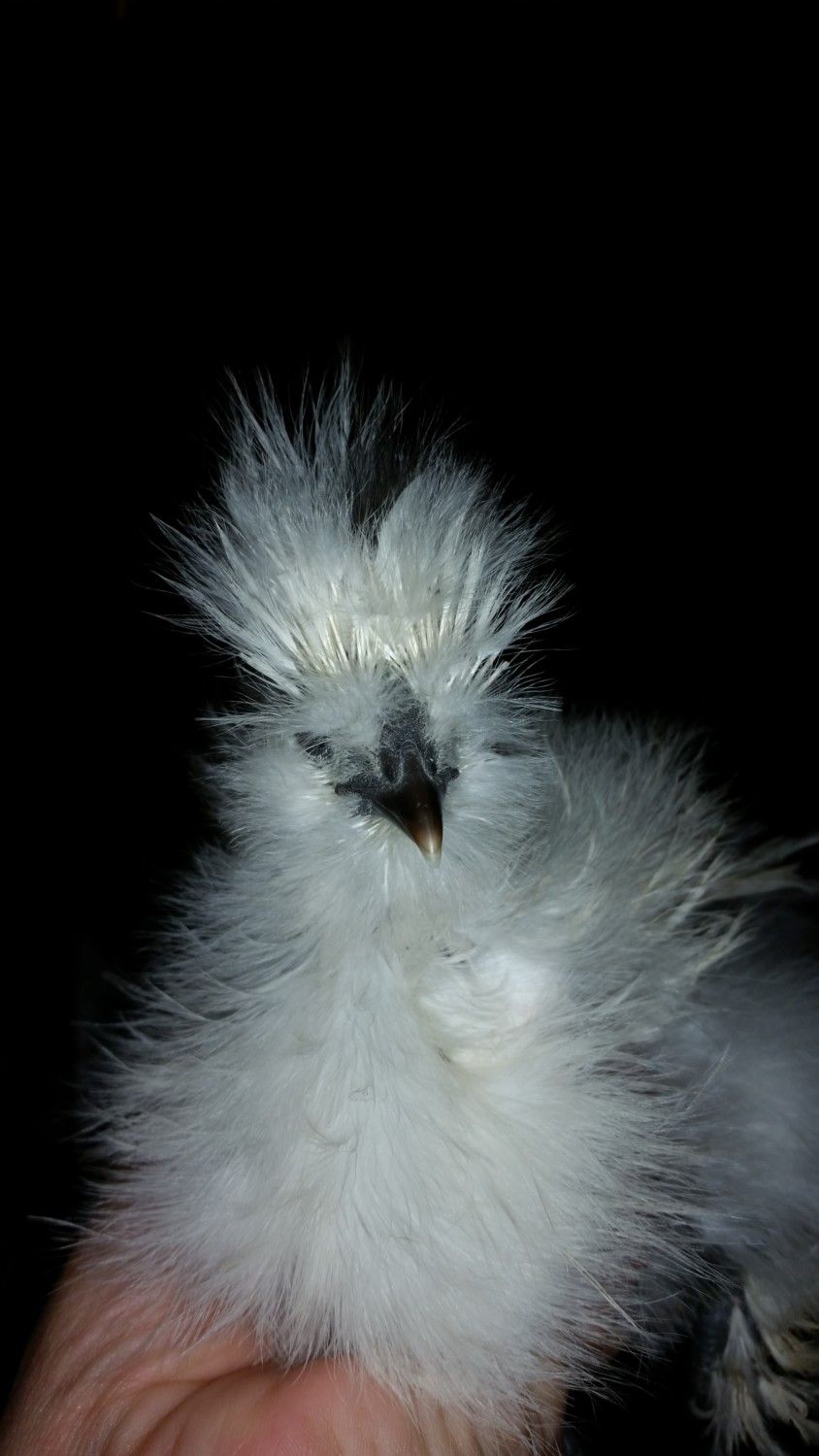 This is Sparkles the 10 week old silkie whom may be frizzled or something because her feathers look so flipped out lol, this one is always first to greet and is quick to catch the treats. George just usually snatches them away. What are your opinions on Sparkles sex? I can take some more pics tomorrow If anyone needs specific shots. Thanks!!